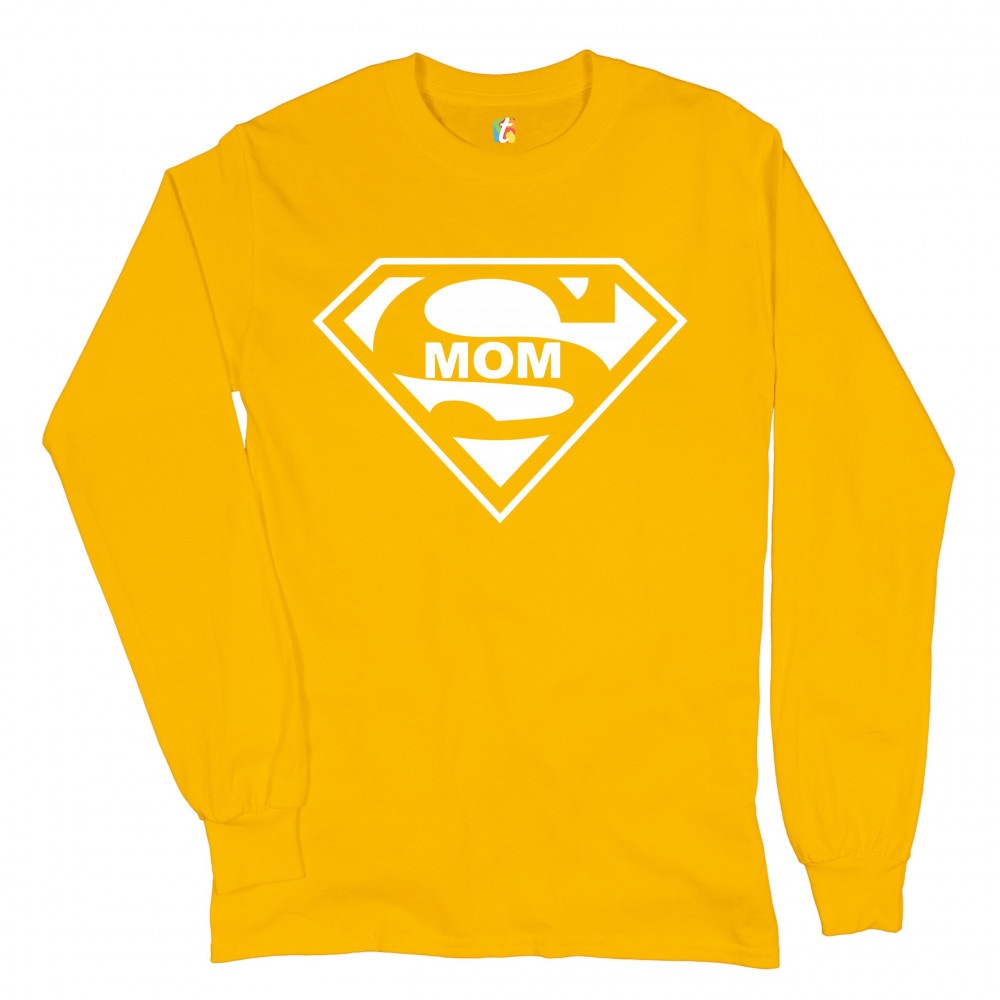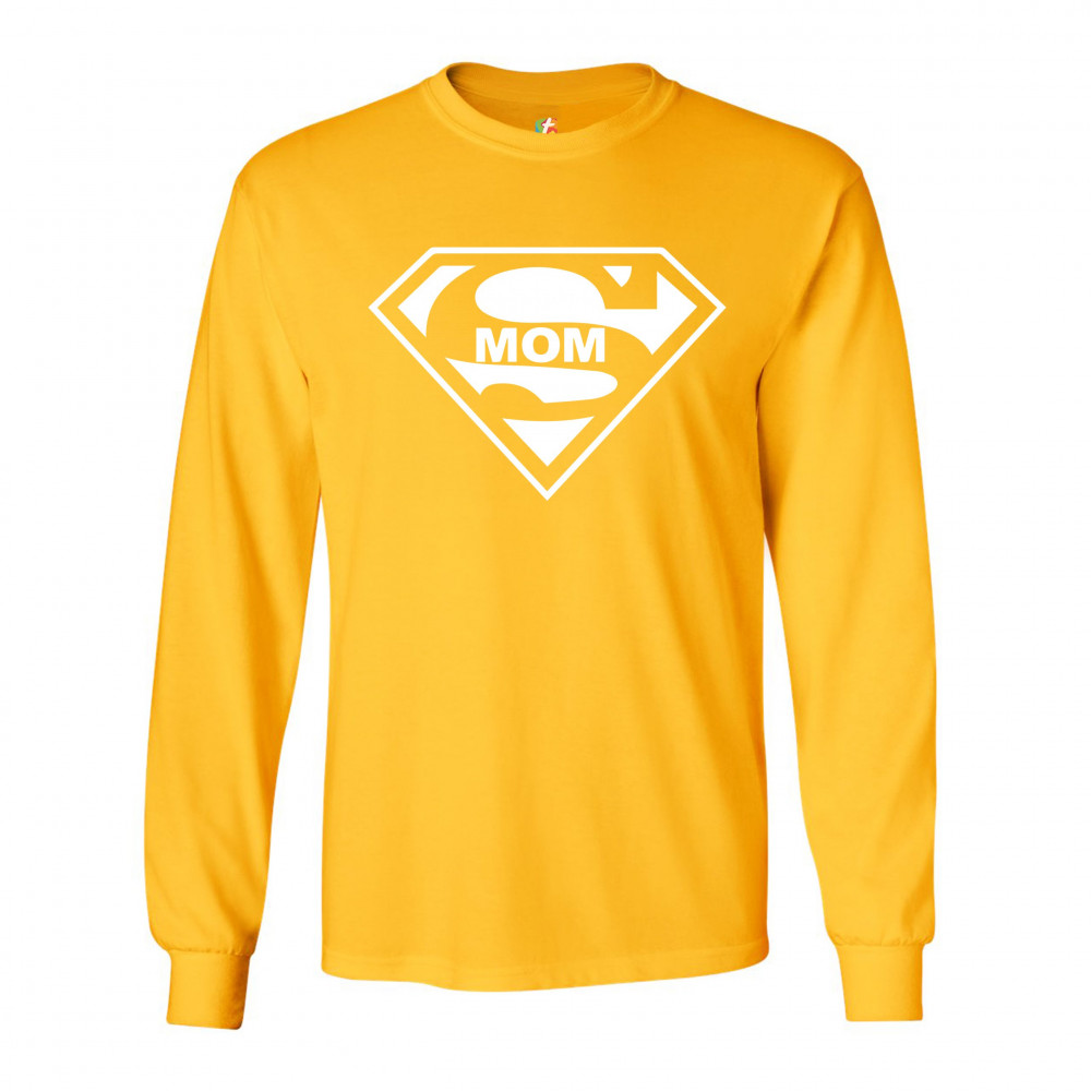 SUPER MOM FUNNY long sleeve t-shirt superhero parody mother's day yellow