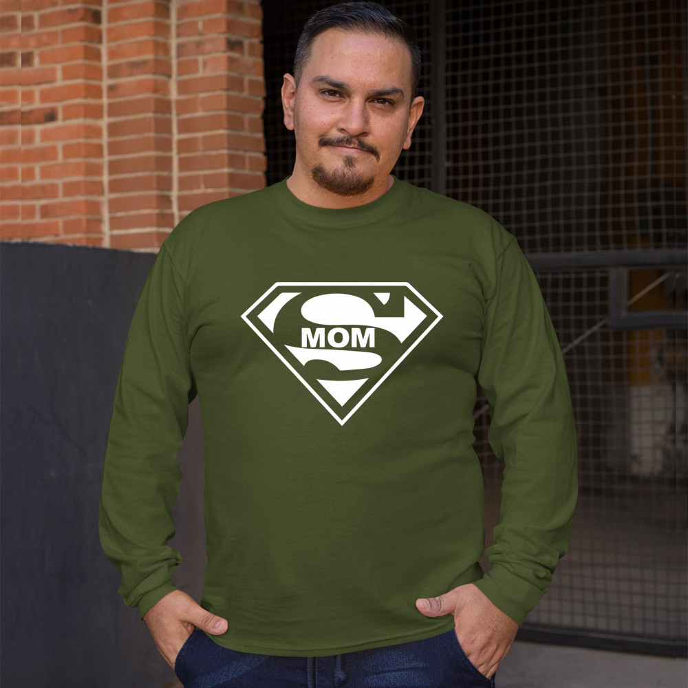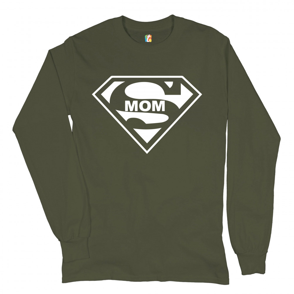 SUPER MOM FUNNY long sleeve t-shirt superhero parody mother's day military green