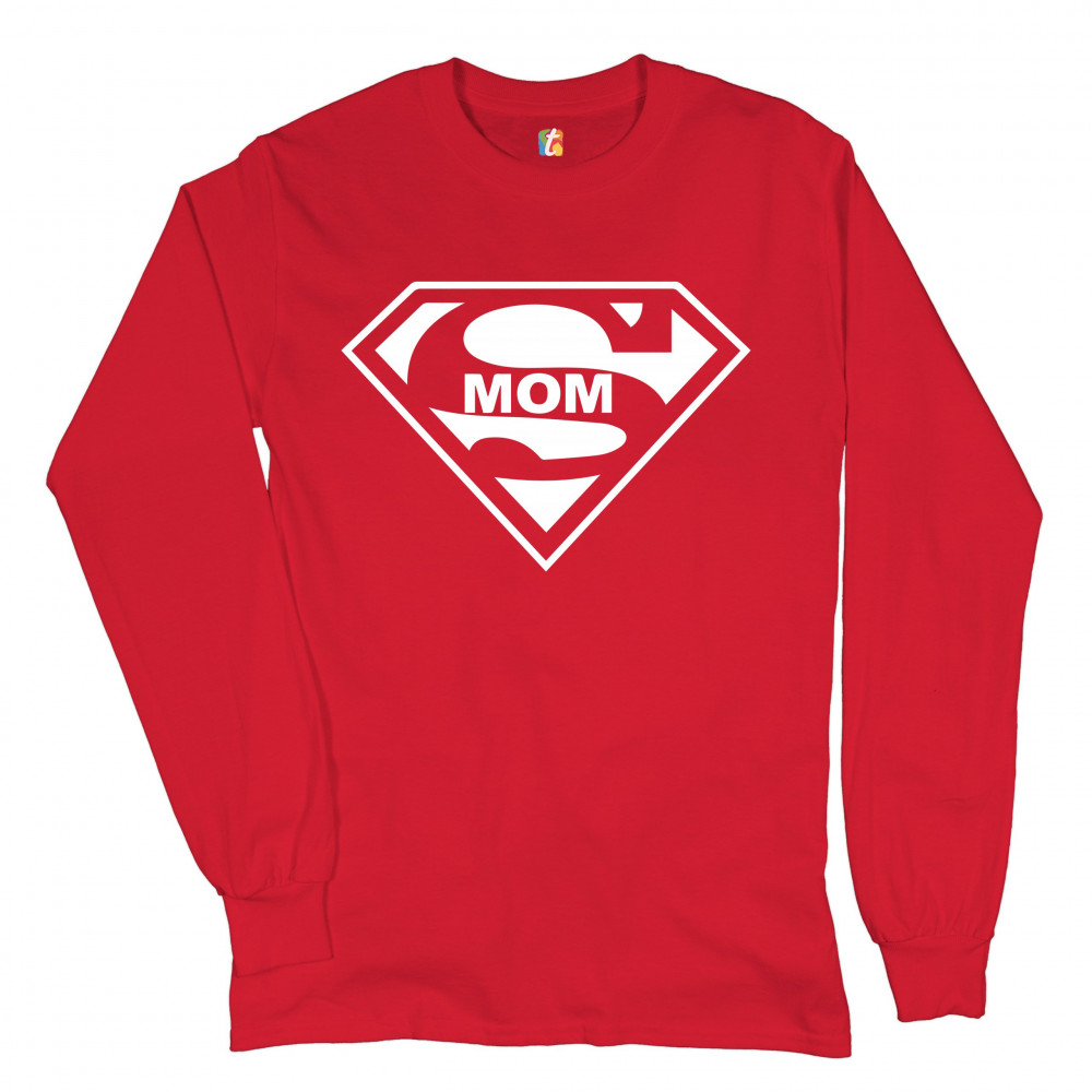 SUPER MOM FUNNY long sleeve t-shirt superhero parody mother's day red
