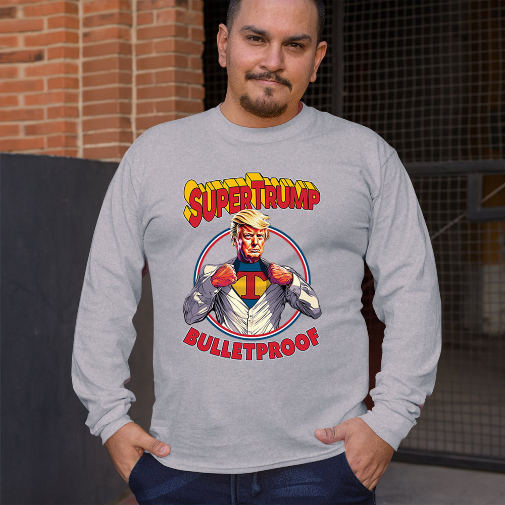 Express your support with a bold SuperTrump design! Perfect for patriots and rallies, this tee symbolizes victory, strength, and conservative pride.