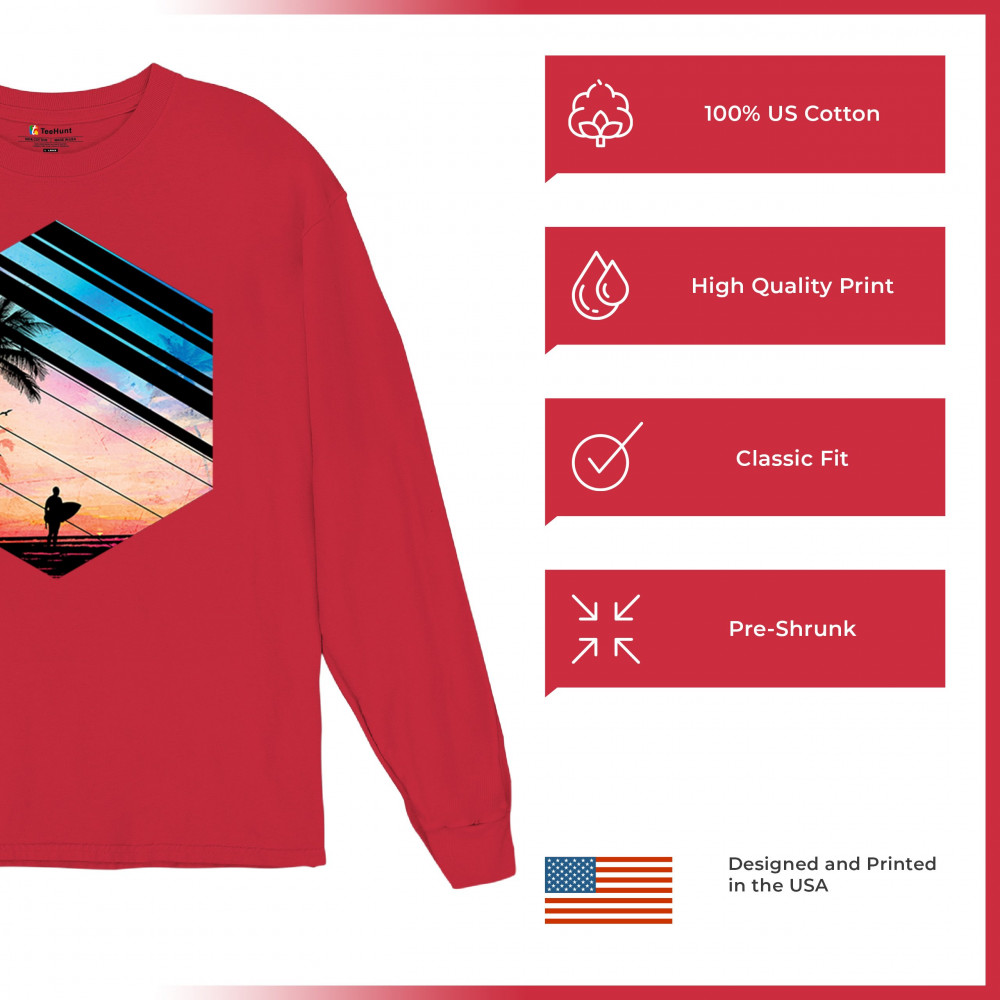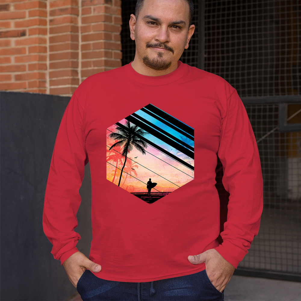 Catch the vibe of endless summer with our surf-inspired tee. Featuring silhouetted palms, warm gradients, and cool geometric shapes, it’s a visual journey from the urban grind to tropical tranquility. This tee is for the soul surfers and dreamers, made to be as enduring as the memories of your last wave. It's more than apparel—it’s a horizon of possibilities. Add this staple to your collection and let the good times roll.