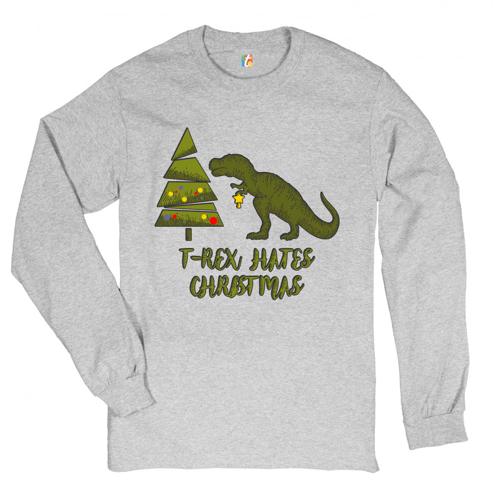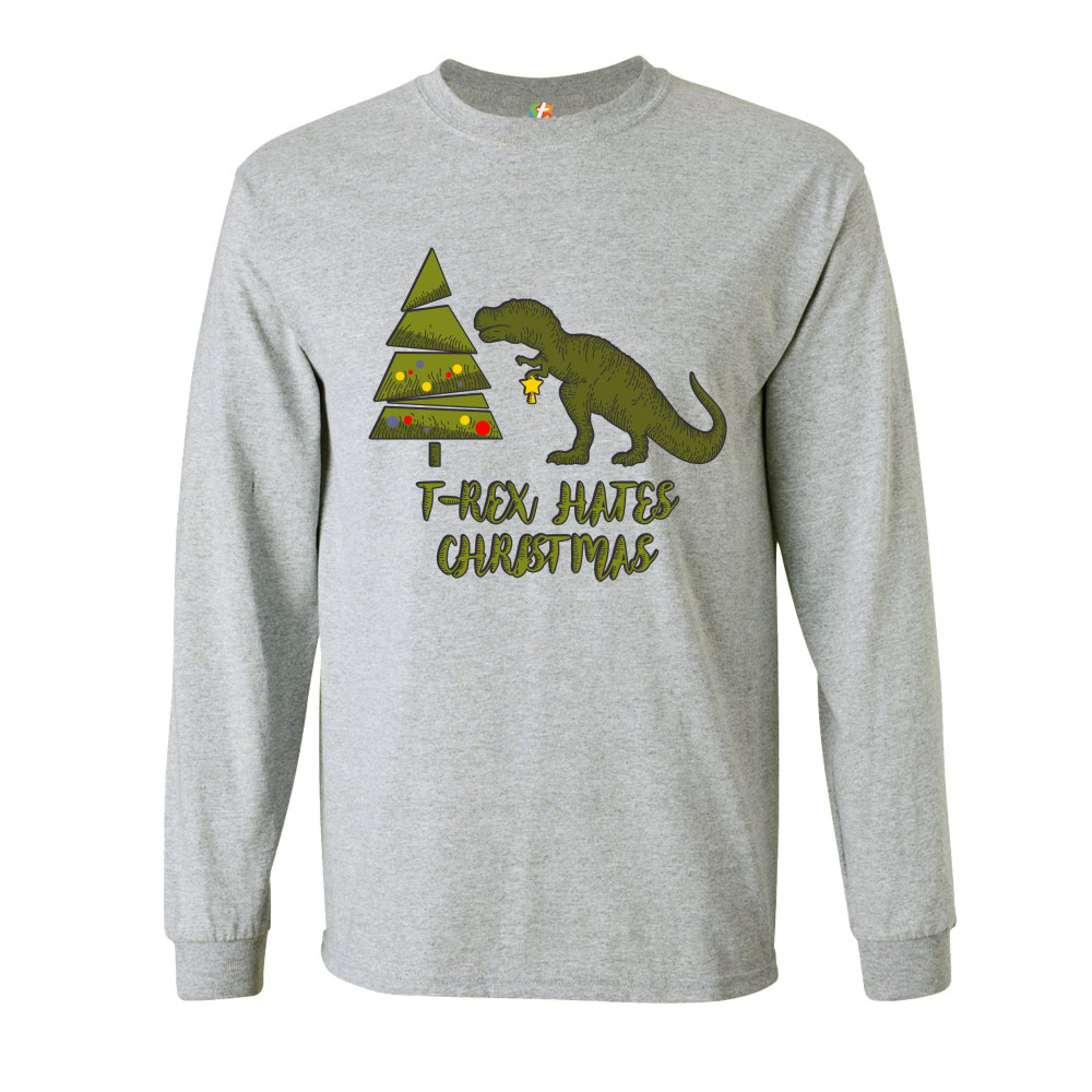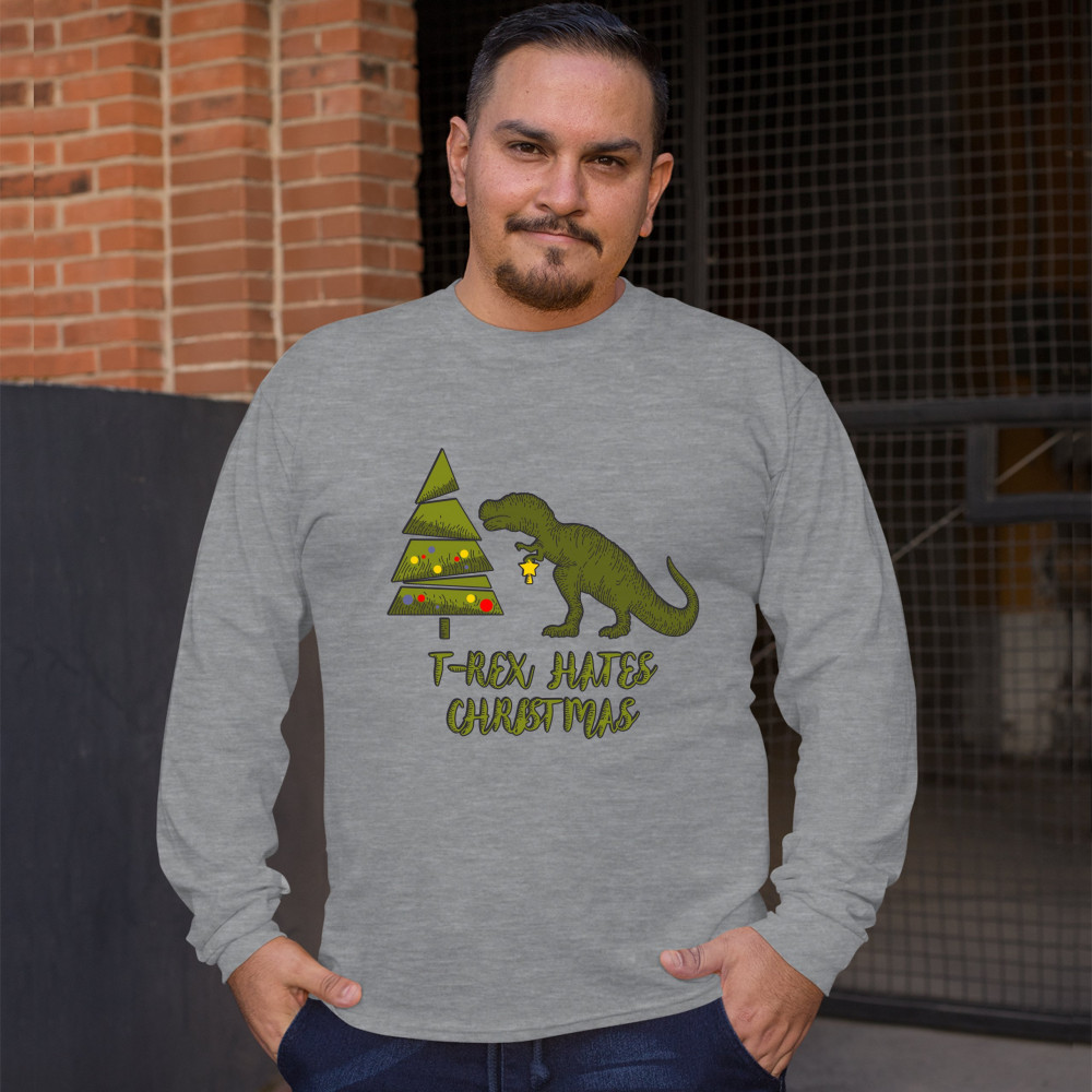 T-REX HATES CHRISTMAS long sleeve t-shirt funny dinosaur xmas eve festive gray