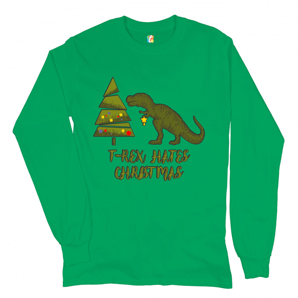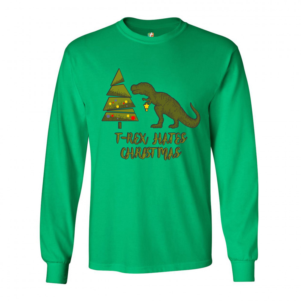 T-REX HATES CHRISTMAS long sleeve t-shirt funny dinosaur xmas eve festive green