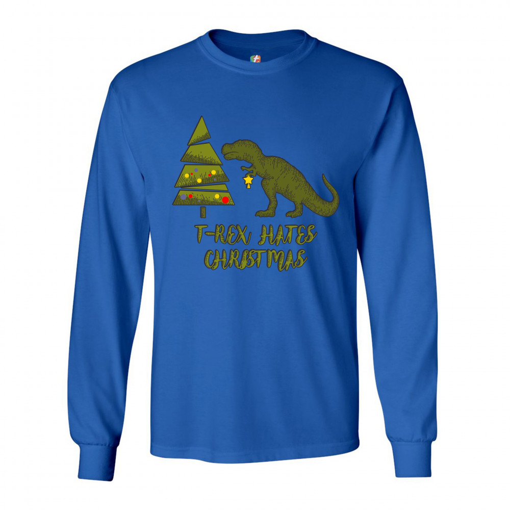 T-REX HATES CHRISTMAS long sleeve t-shirt funny dinosaur xmas eve festive royal blue