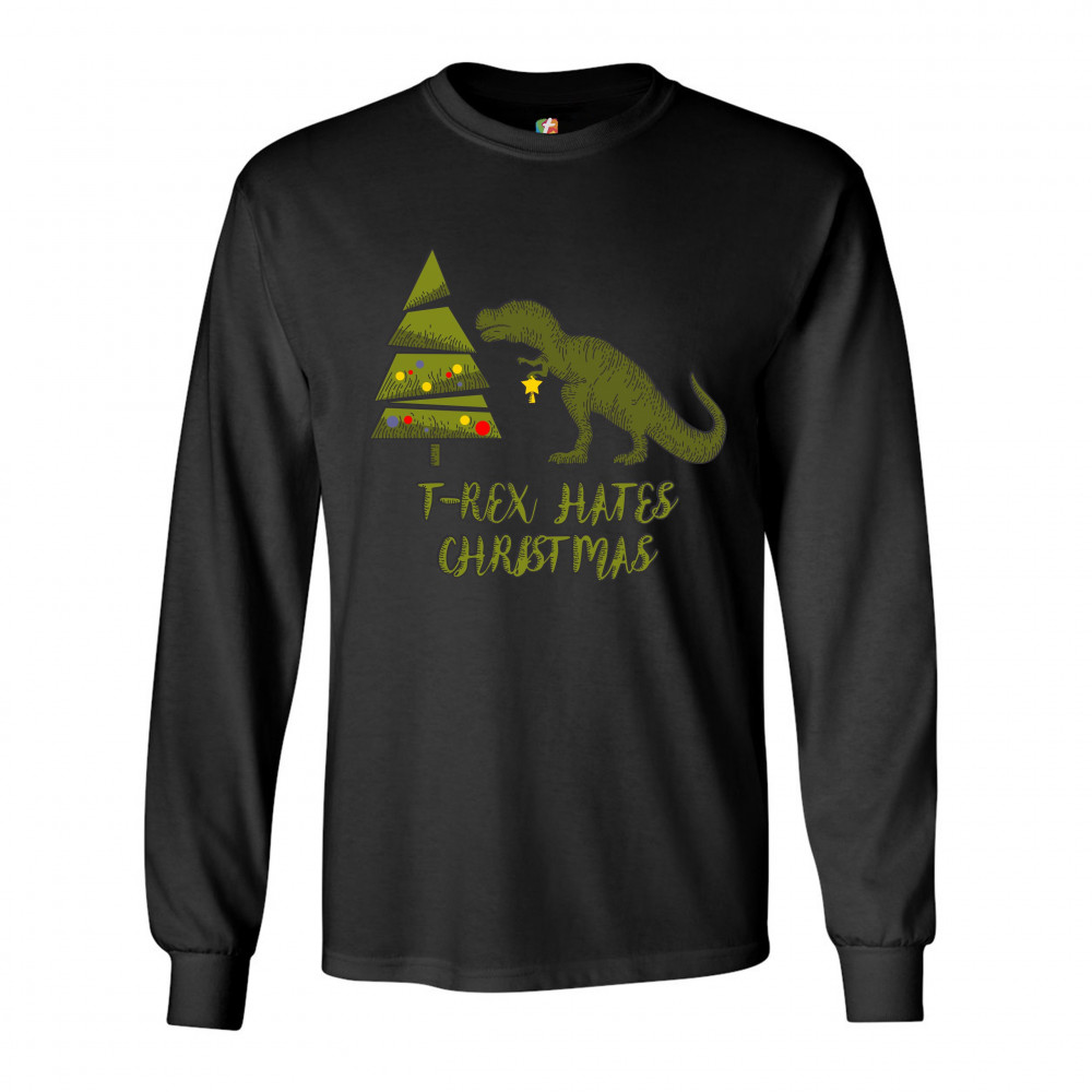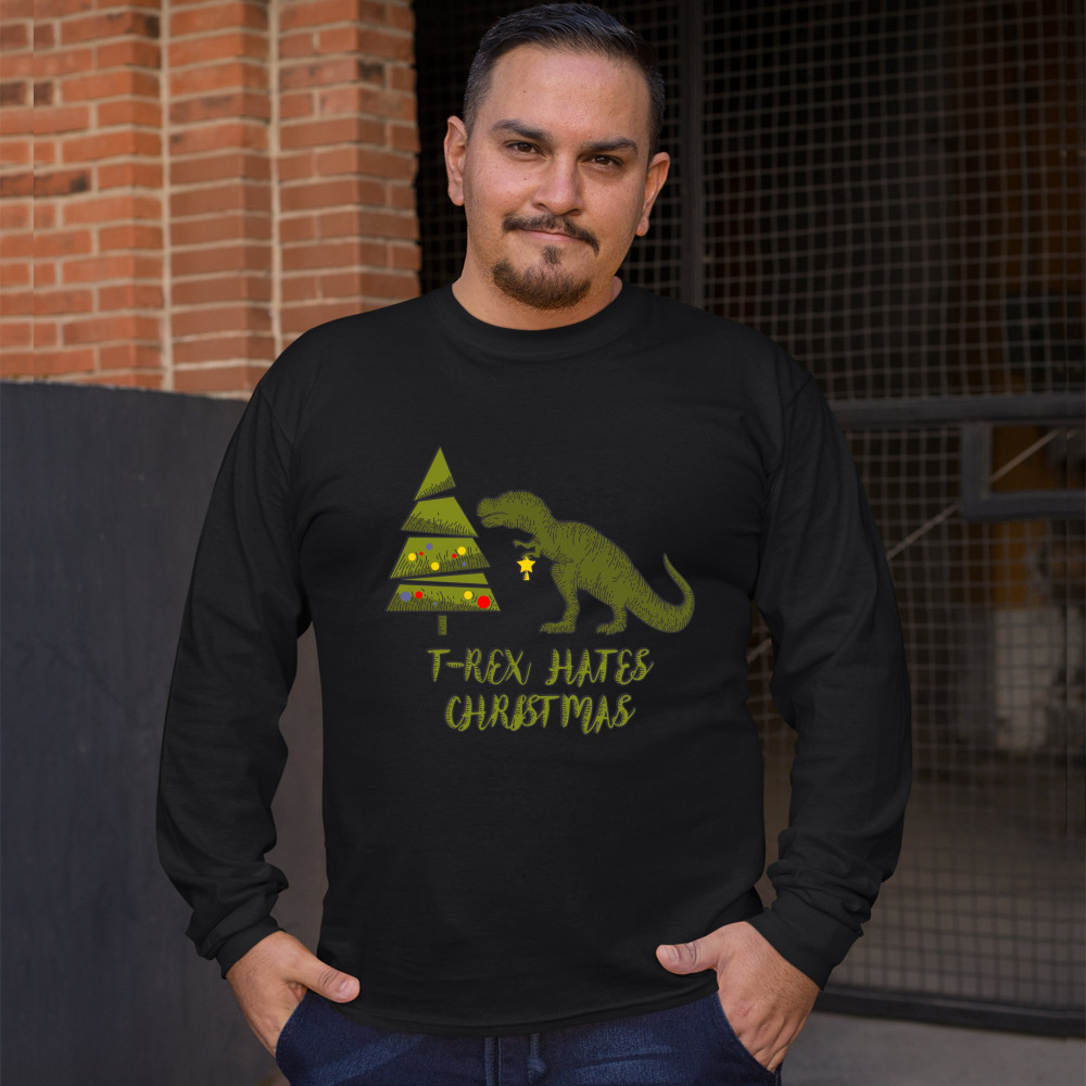 T-REX HATES CHRISTMAS long sleeve t-shirt funny dinosaur xmas eve festive black