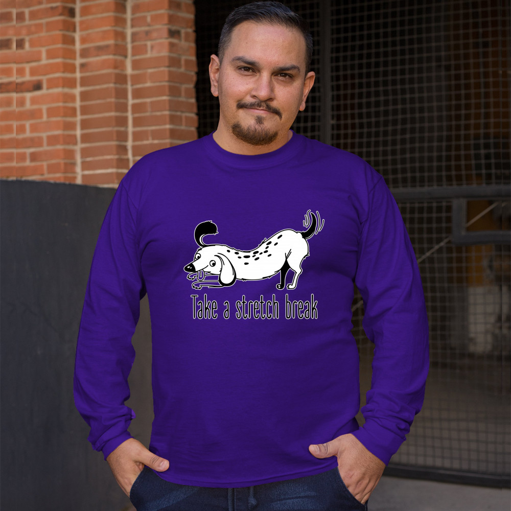 TAKE A STRETCH BREAK long sleeve t-shirt funny dachshund dog lover pet owner purple