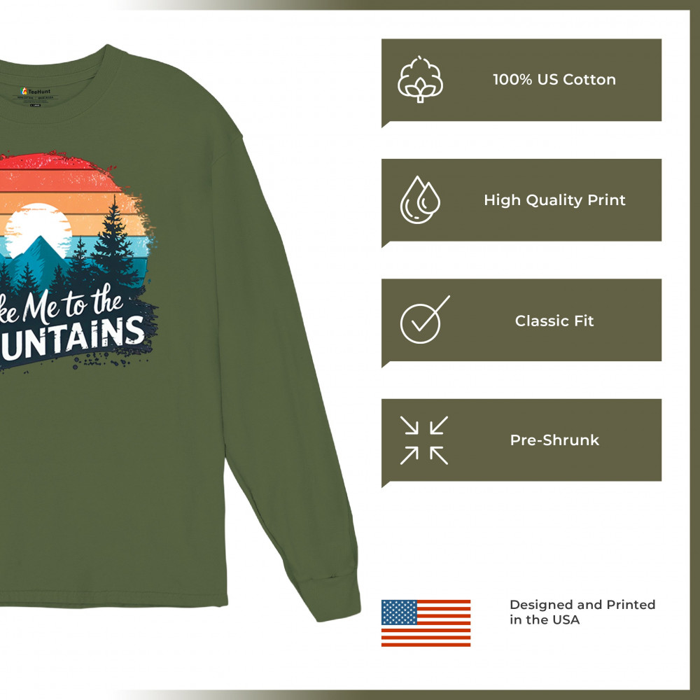 Take Me to the Mountains is a perfect design for campers, hikers, glamping fans, and forest lovers who enjoy off-grid nature escapes.