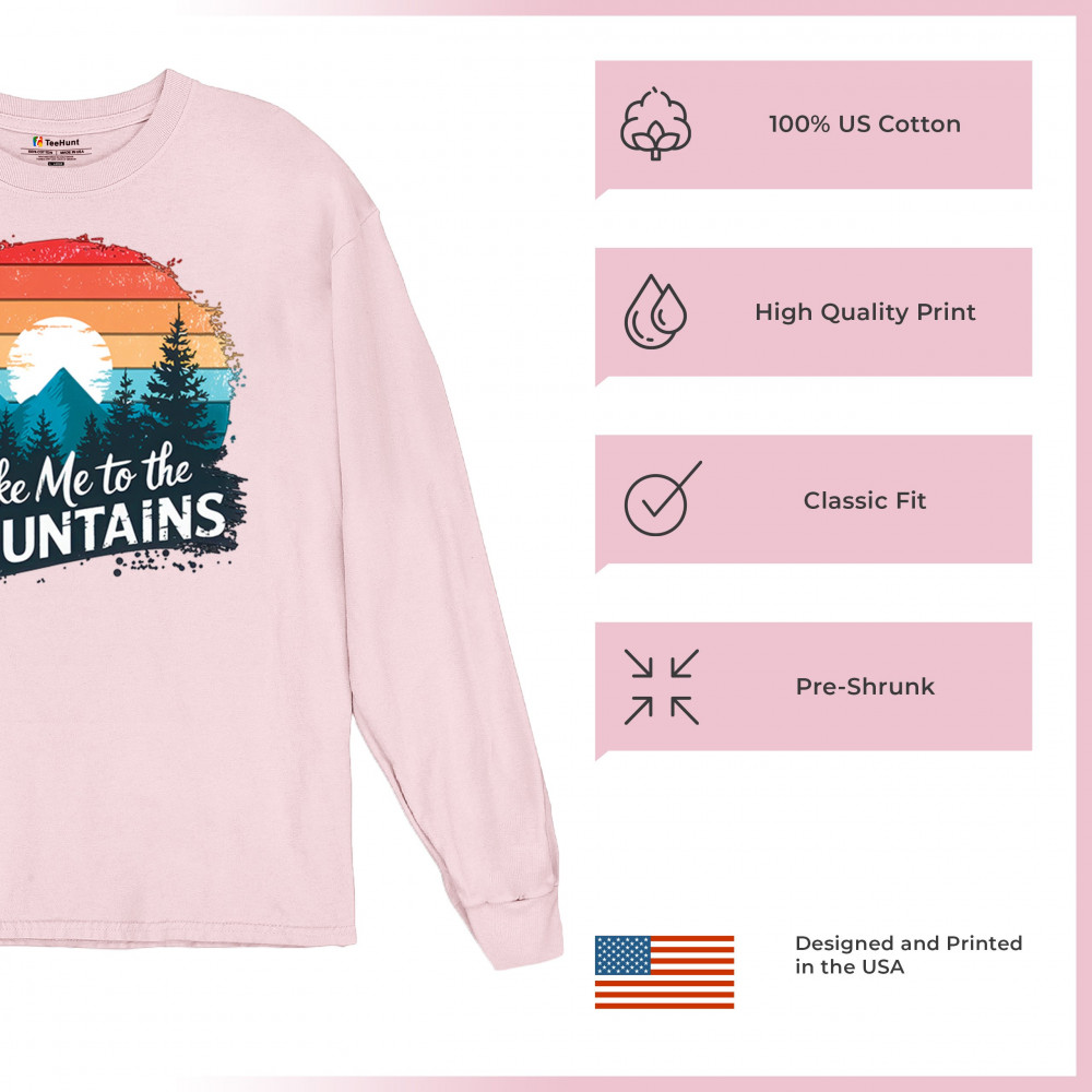 Take Me to the Mountains is built for nature lovers and adventure seekers. From trail hikes to glamping getaways, this retro-style design captures camping energy, wilderness freedom, and peaceful forest escapes. Perfect for off-grid campers, family trips, and national park explorers.
