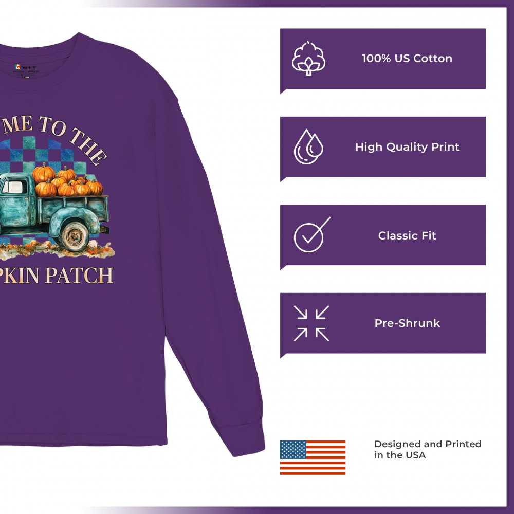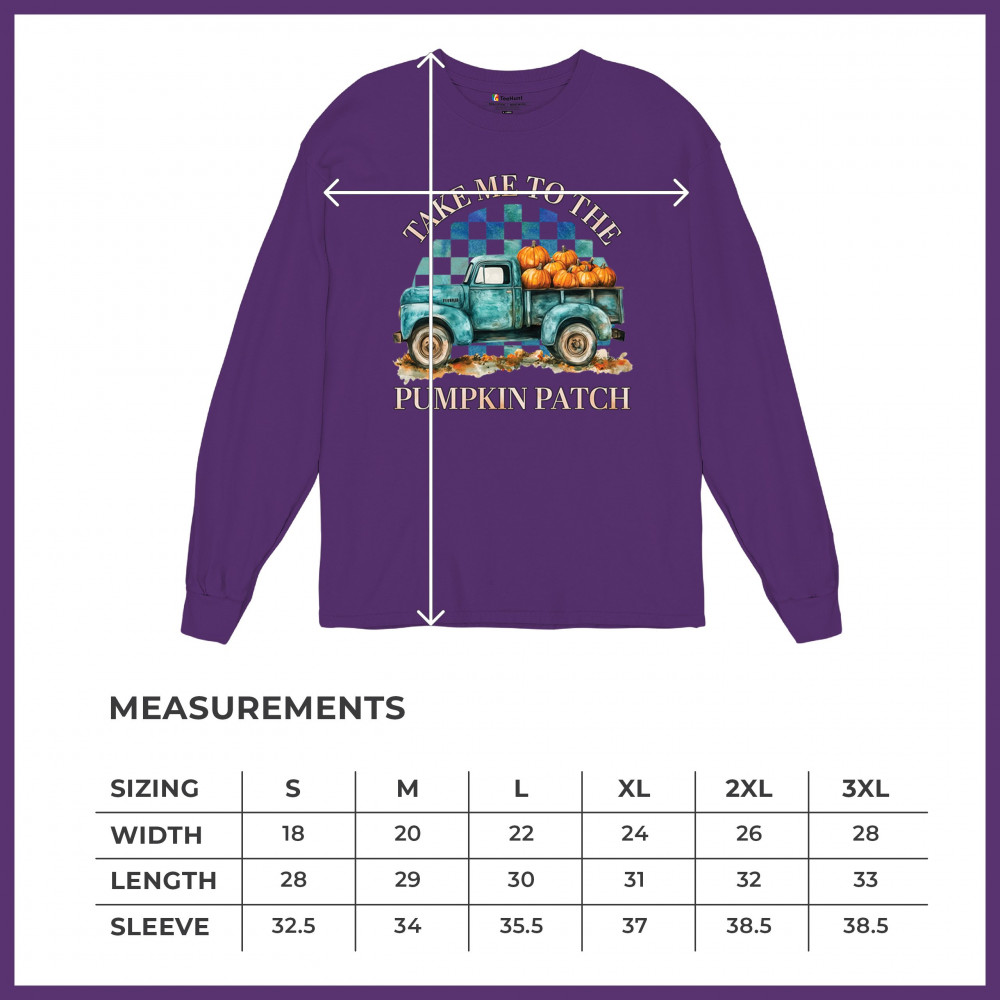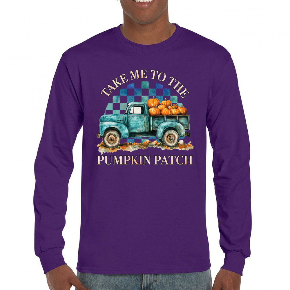 Celebrate autumn in style with the "Take Me to the Pumpkin Patch" design, featuring a vintage truck and festive pumpkins—perfect for fall lovers!