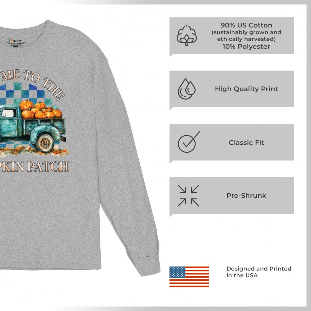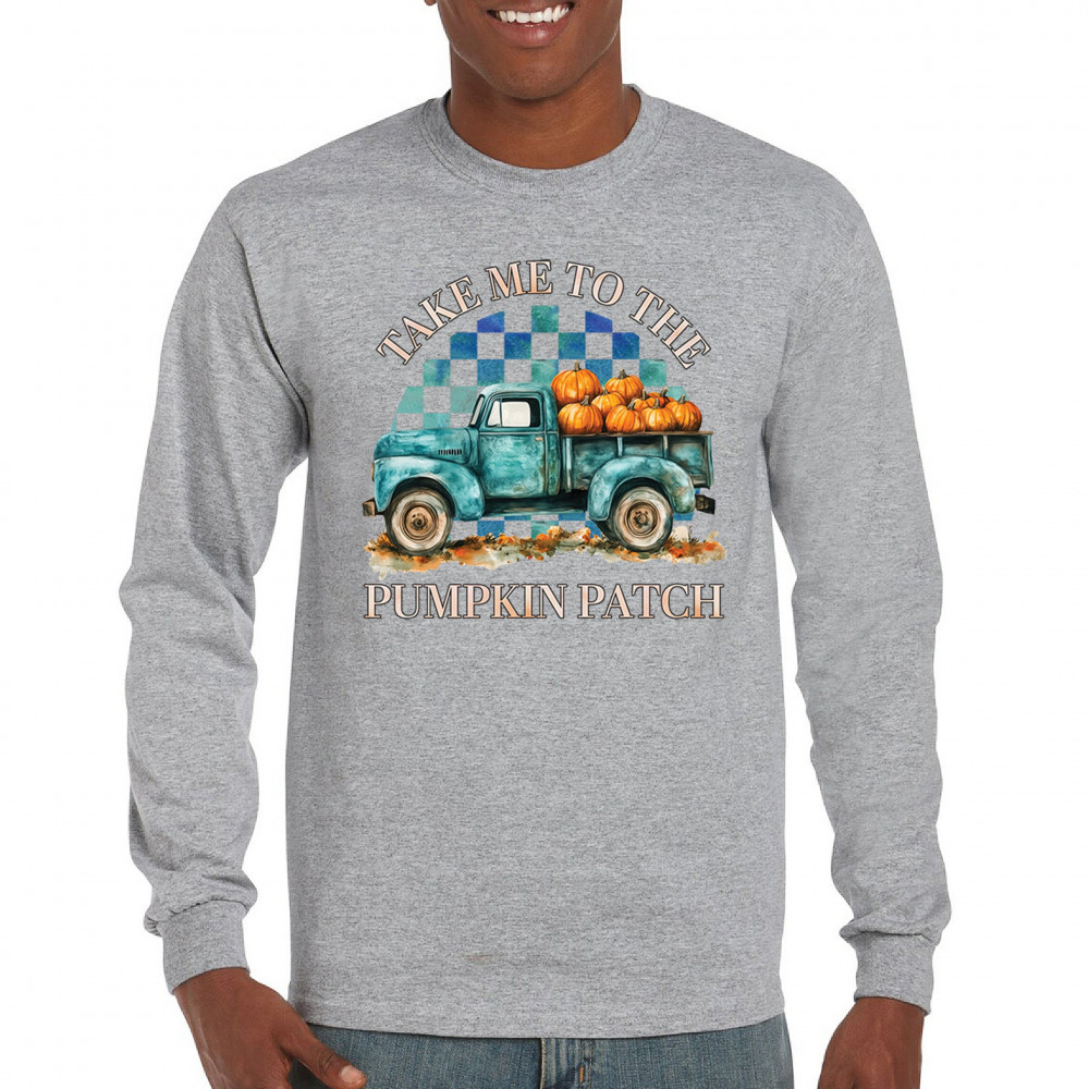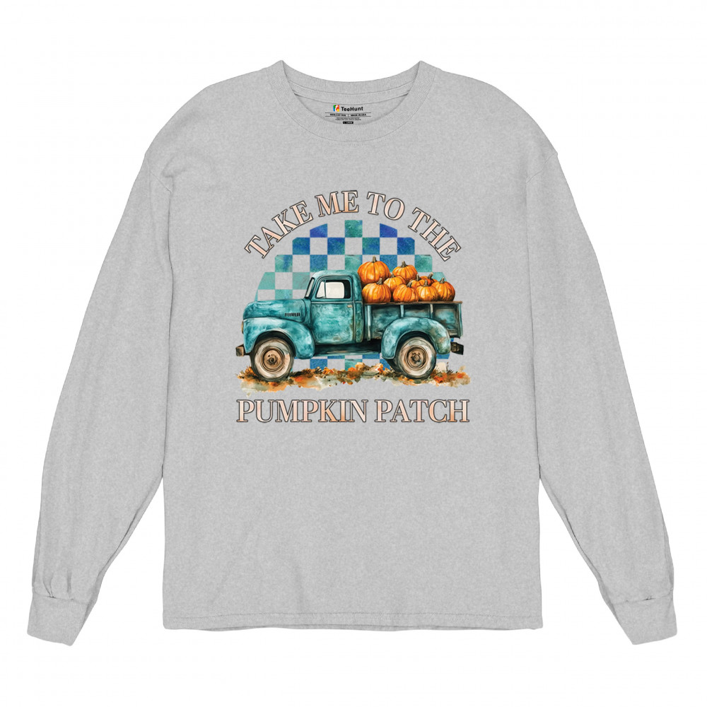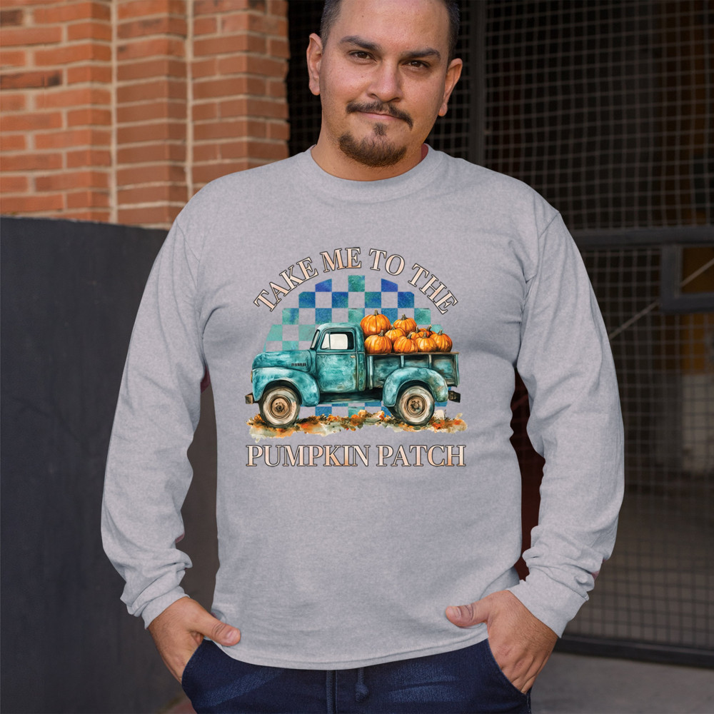 Celebrate autumn in style with the "Take Me to the Pumpkin Patch" design, featuring a vintage truck and festive pumpkins—perfect for fall lovers!