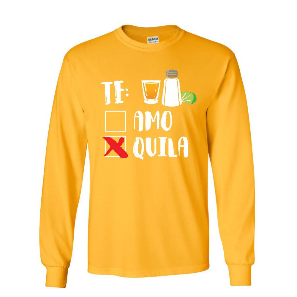 TE AMO OR TEQUILA long sleeve t-shirt funny cinco de mayo & drinko mexican tee yellow