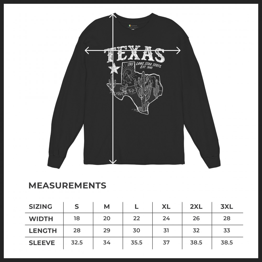 Celebrate the Lone Star State with this rugged Texas map design featuring cactus, mountains, and bold state pride text. A rustic southwestern tribute to the state’s heritage, established in 1845, it’s the perfect look for rodeos, country festivals, and lovers of the Texas desert lifestyle and scenery.
