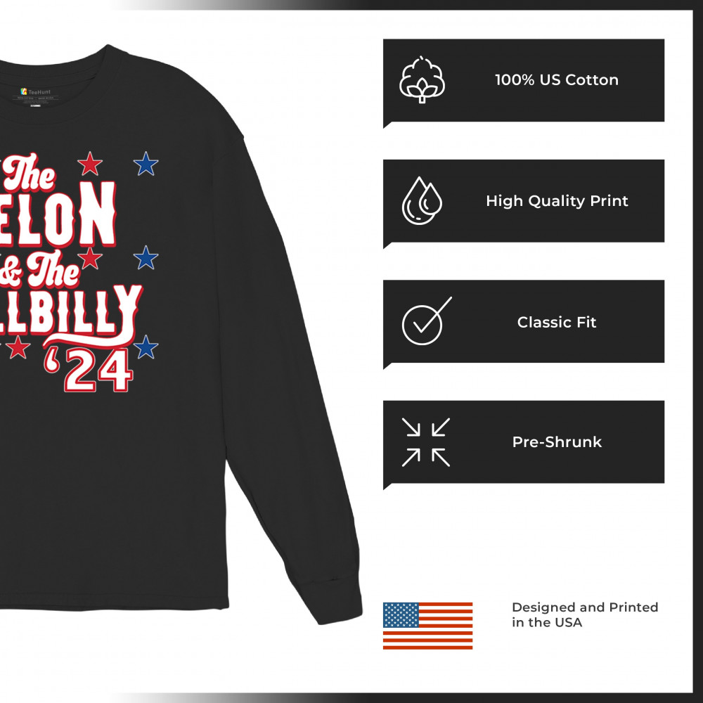 Get ready for the 2024 race with our "The Felon & The Hillbilly '24" print, embracing the humor and determination of Trump and Vance supporters. This design combines lighthearted political commentary with a bold statement of conservative pride. Whether for a rally or daily wear, let everyone know where you stand. Celebrate the American spirit, defy the odds, and take a stand for what you believe in. Proudly show your support in style!