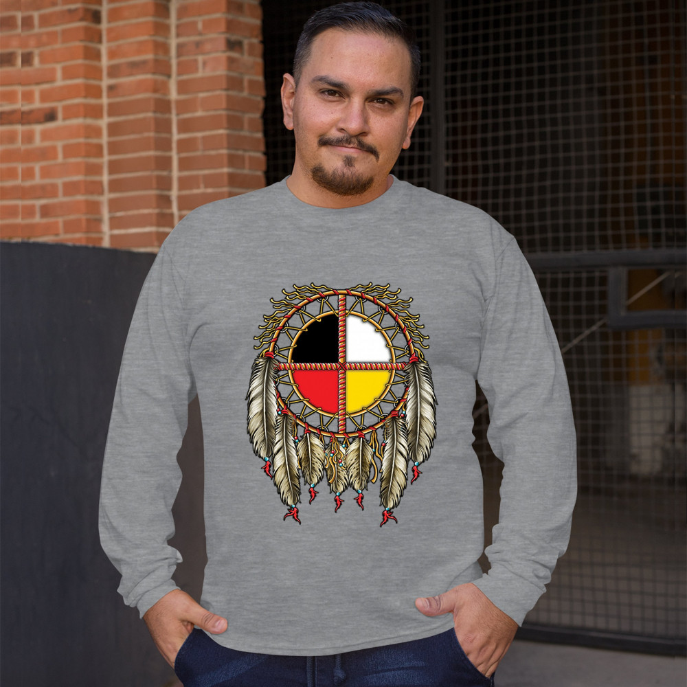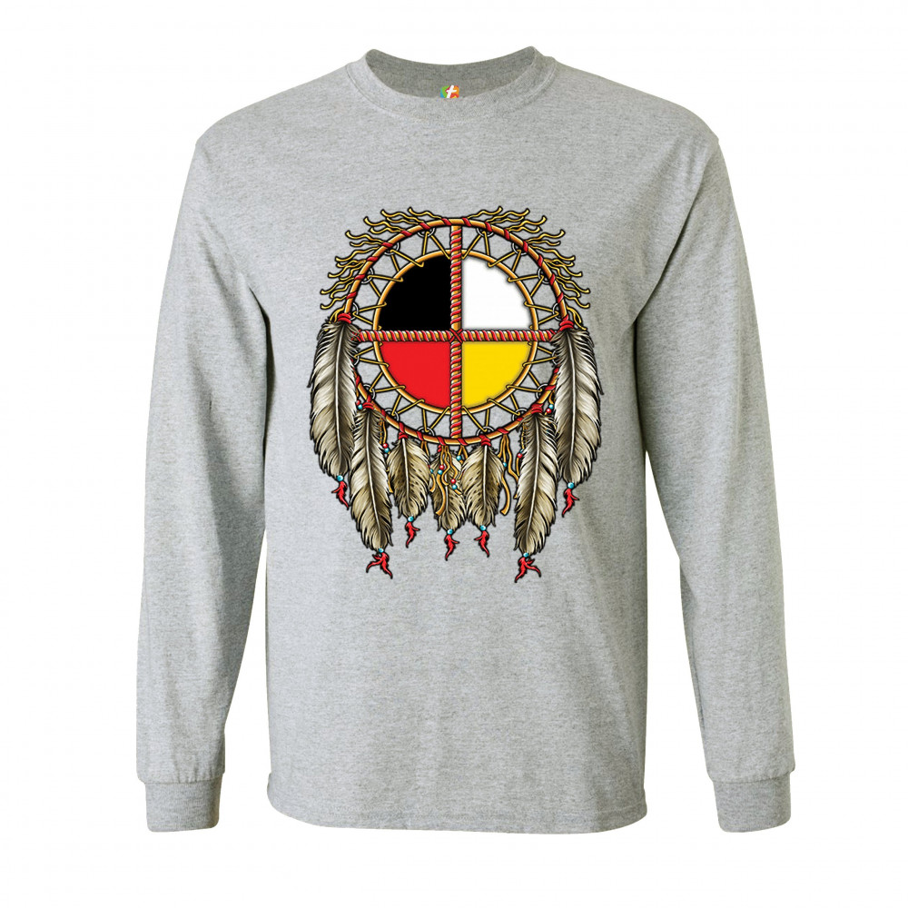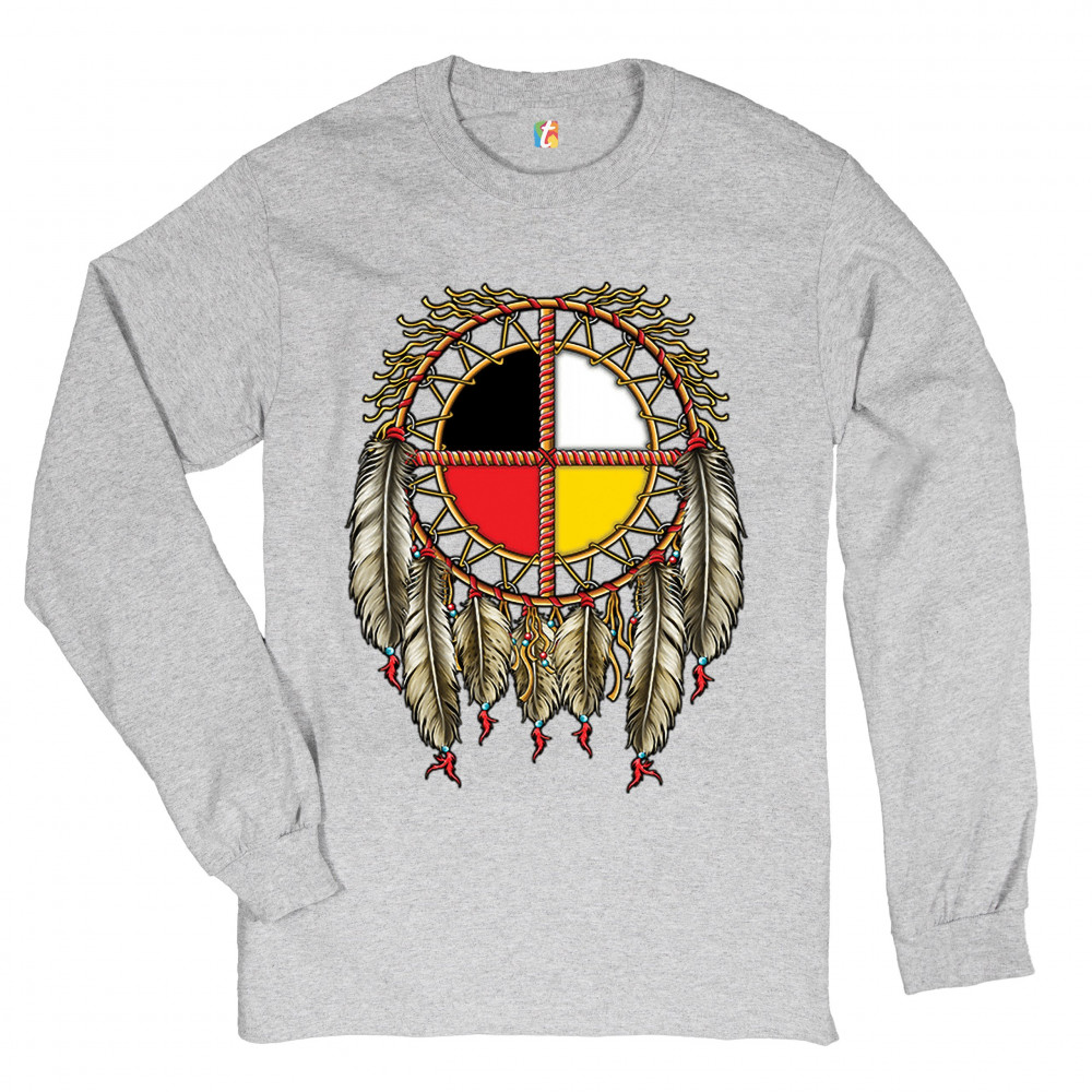 THE MEDICINE WHEEL DREAMCATCHER long sleeve t-shirt native american symbol gray