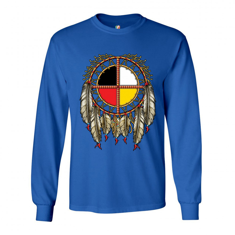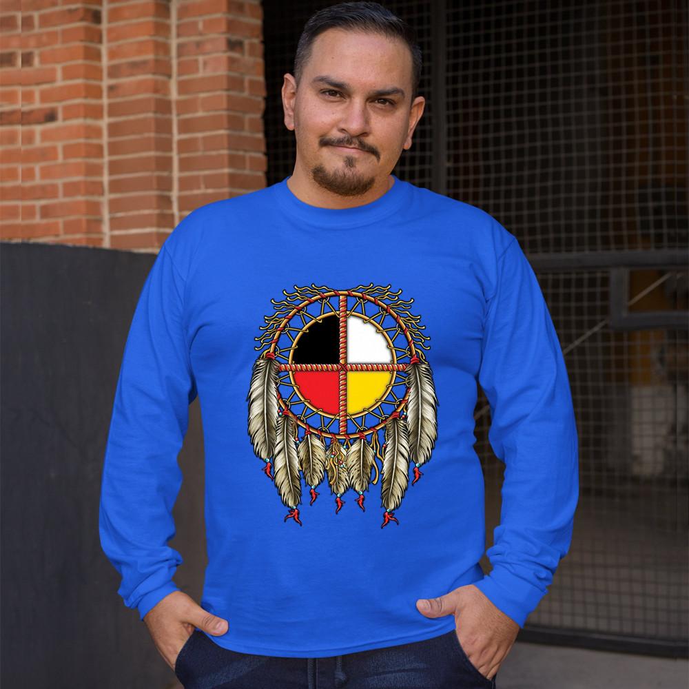 THE MEDICINE WHEEL DREAMCATCHER long sleeve t-shirt native american symbol royal blue