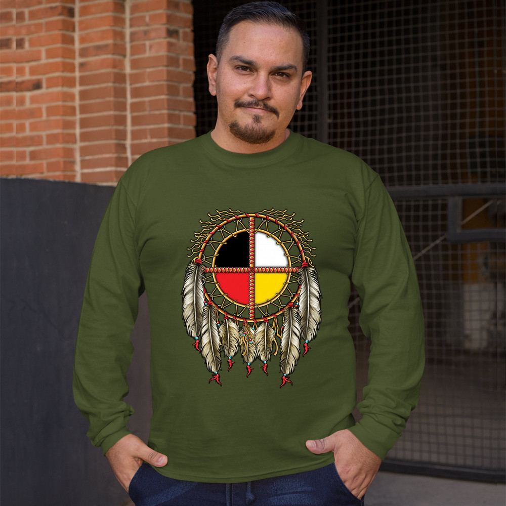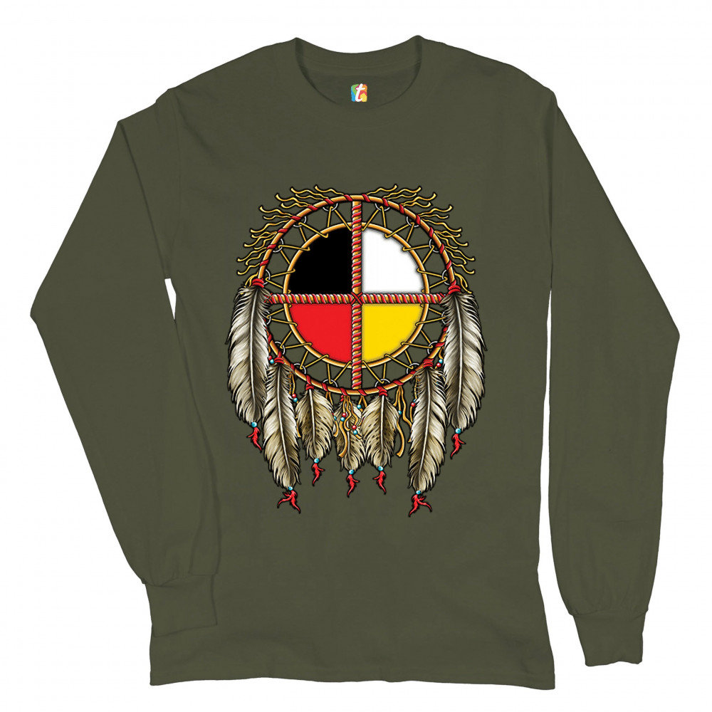 THE MEDICINE WHEEL DREAMCATCHER long sleeve t-shirt native american symbol military green