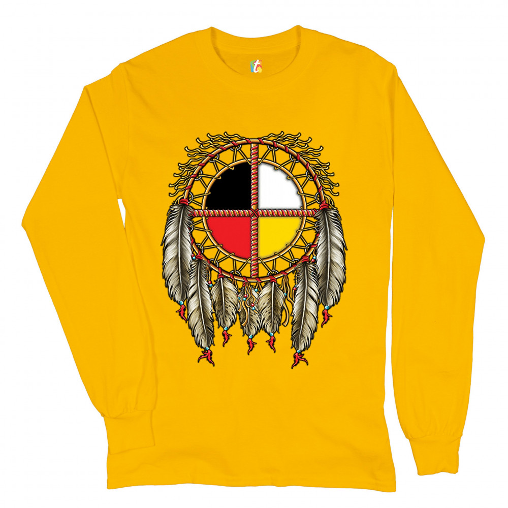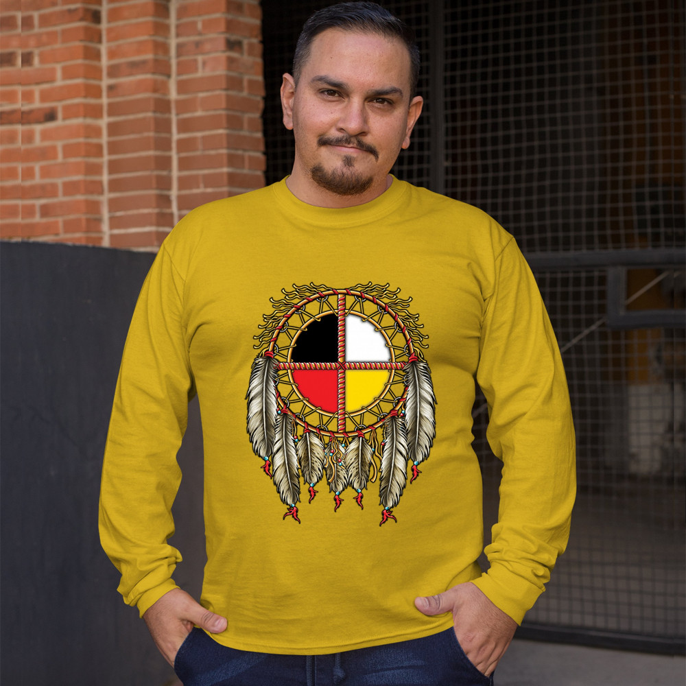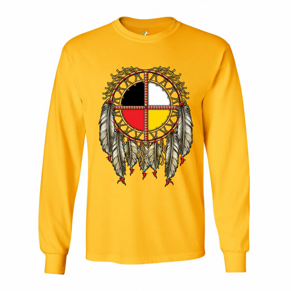 THE MEDICINE WHEEL DREAMCATCHER long sleeve t-shirt native american symbol yellow