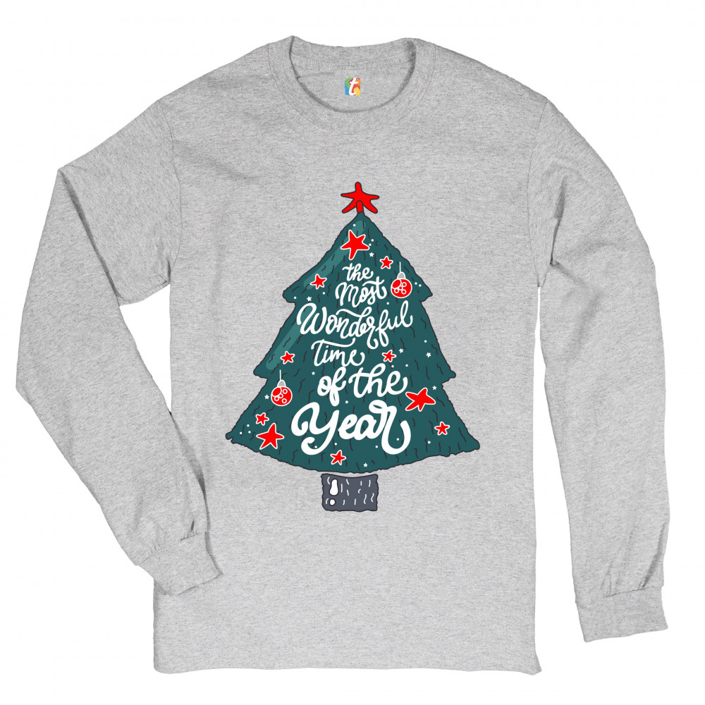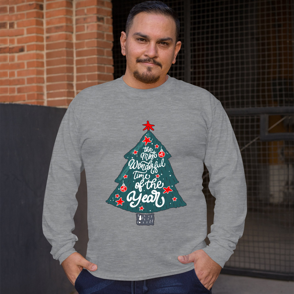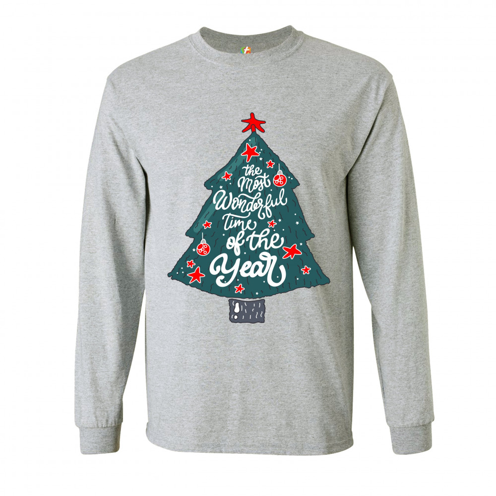 THE MOST WONDERFUL TIME OF THE YEAR long sleeve t-shirt christmas tree xmas gray