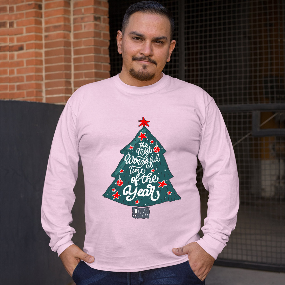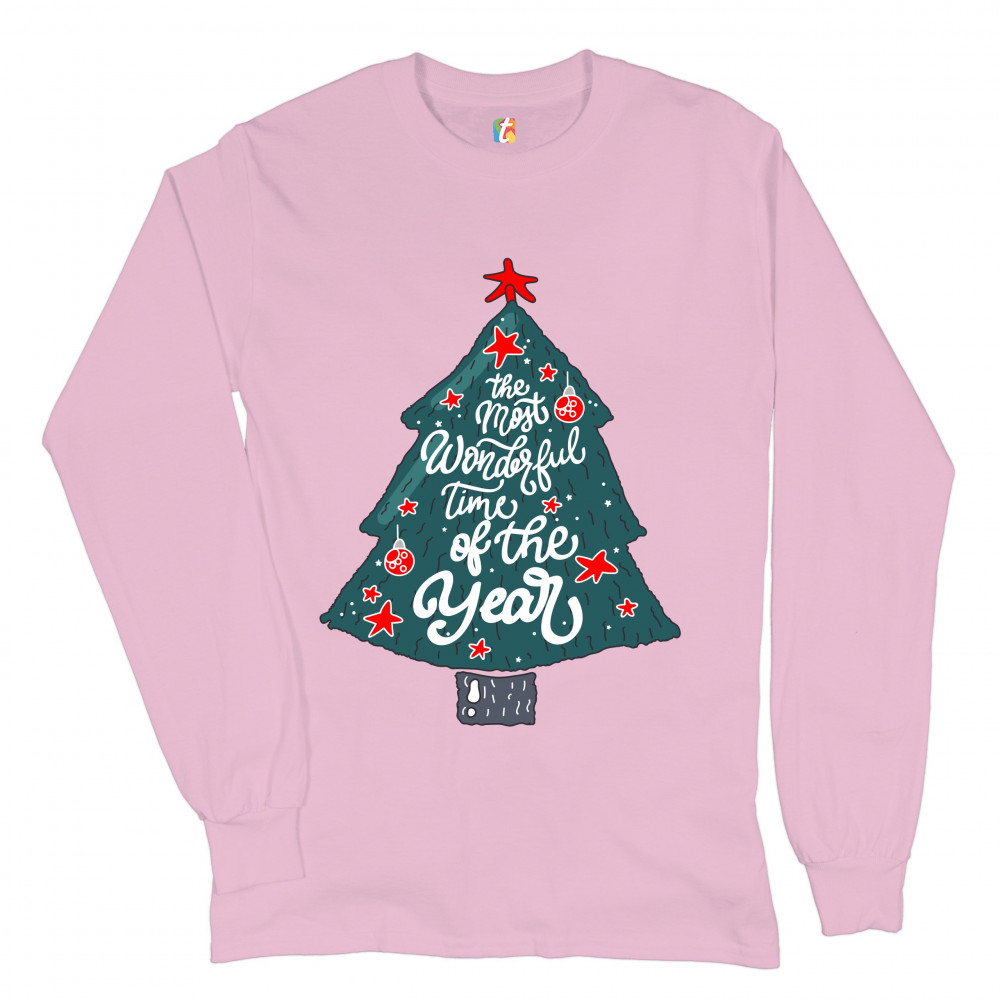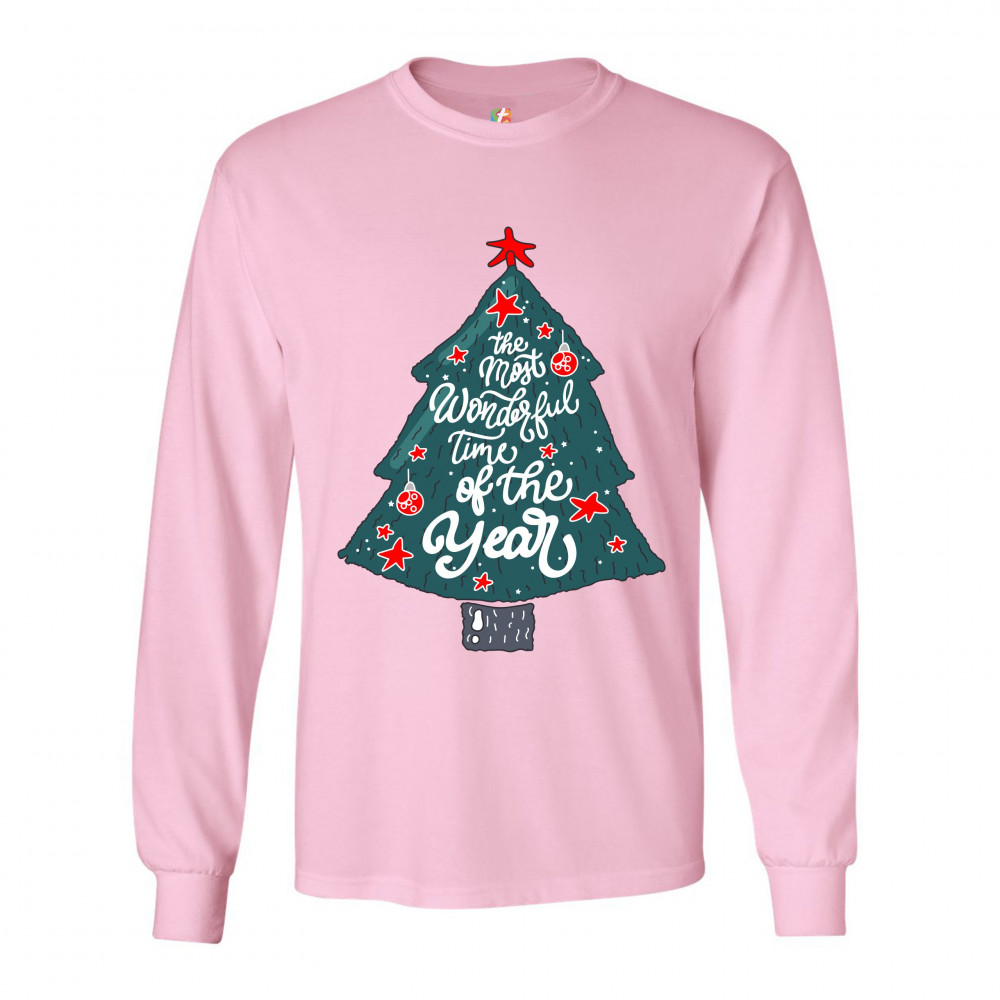 THE MOST WONDERFUL TIME OF THE YEAR long sleeve t-shirt christmas tree xmas pink