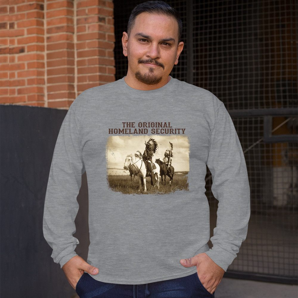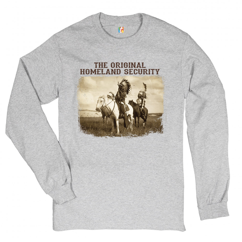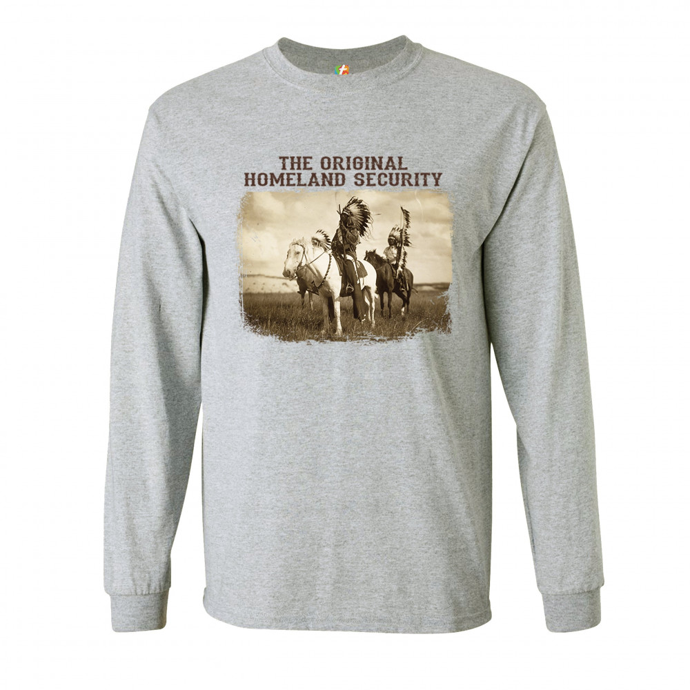 THE ORIGINAL HOMELAND SECURITY long sleeve t-shirt indigenous tribal chiefs gray