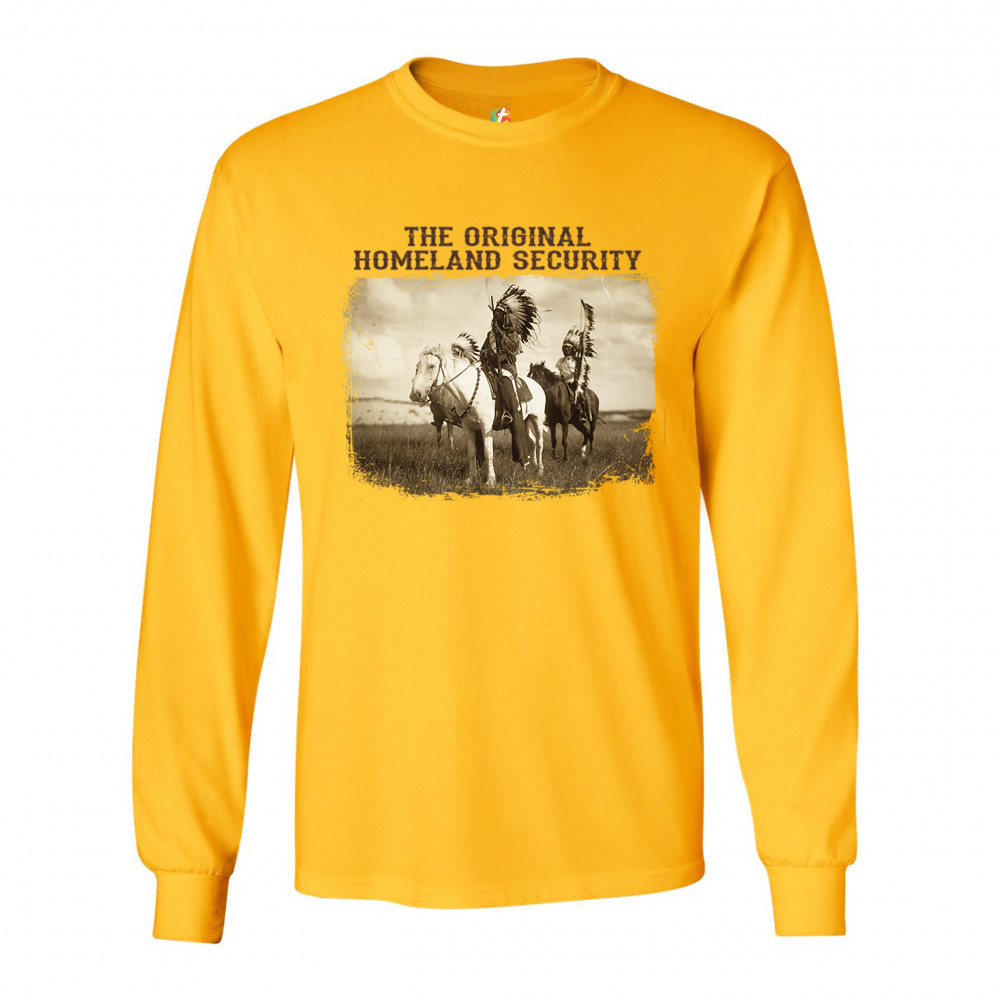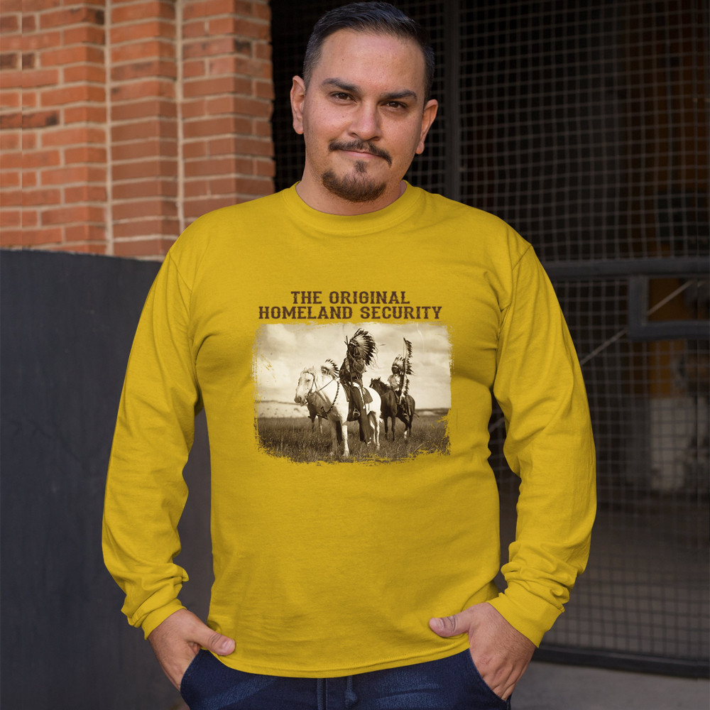 THE ORIGINAL HOMELAND SECURITY long sleeve t-shirt indigenous tribal chiefs yellow