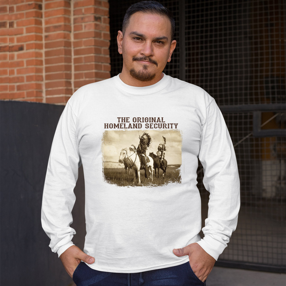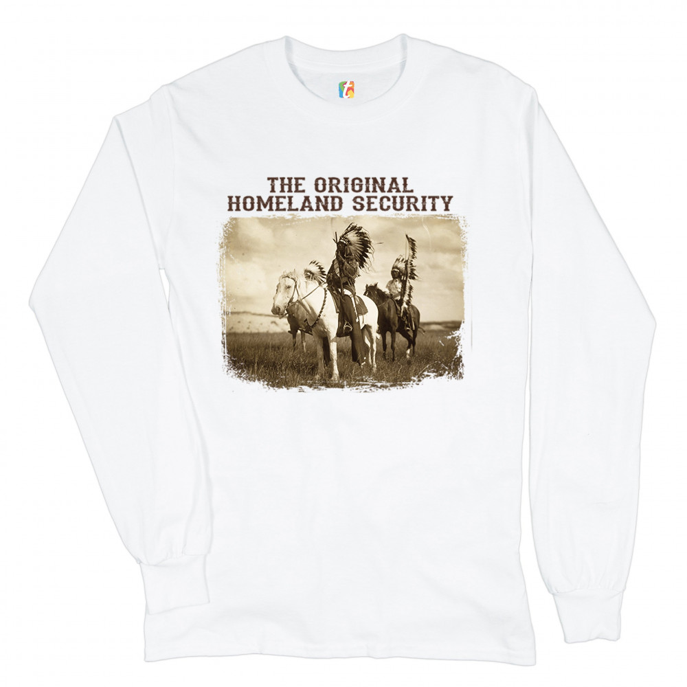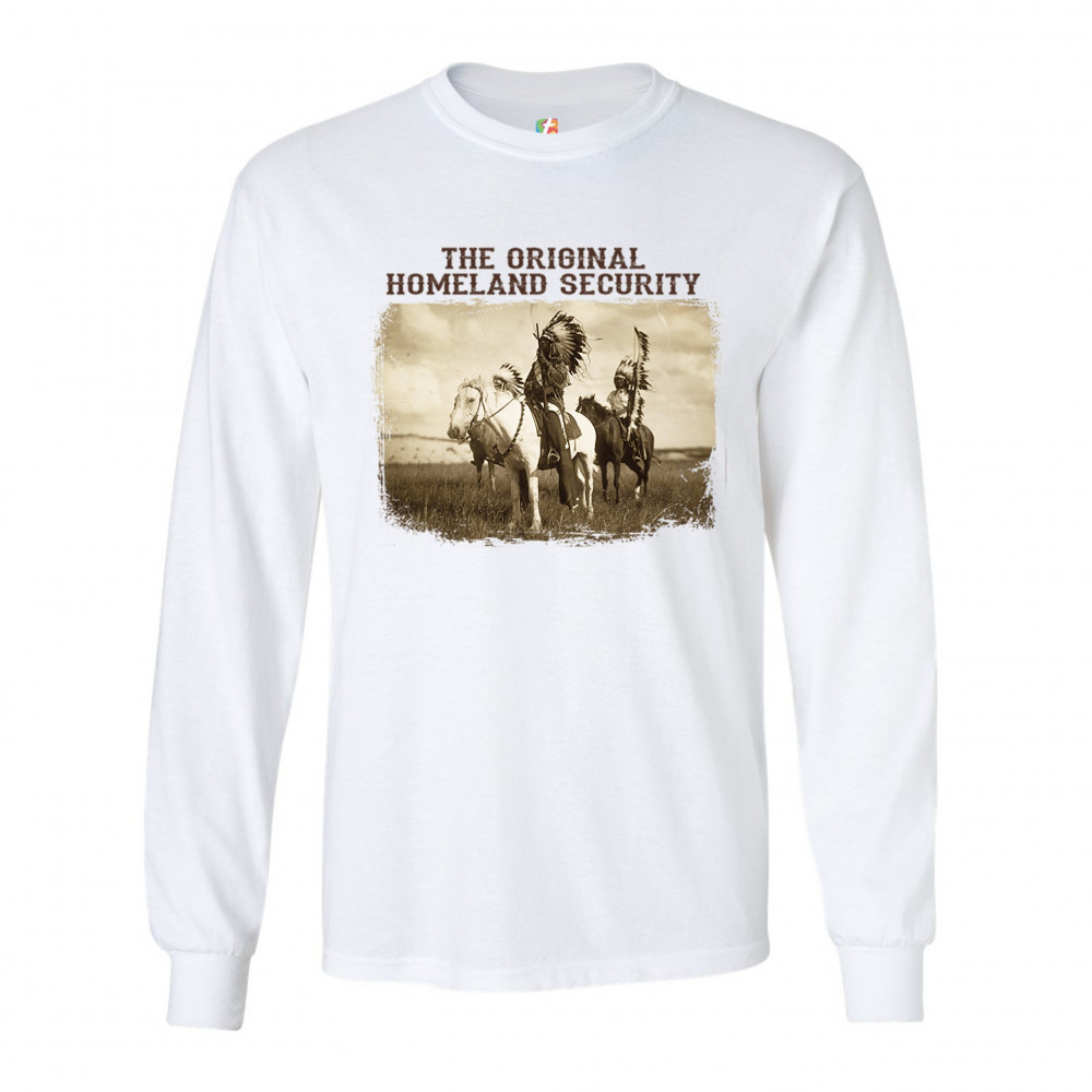 THE ORIGINAL HOMELAND SECURITY long sleeve t-shirt indigenous tribal chiefs white