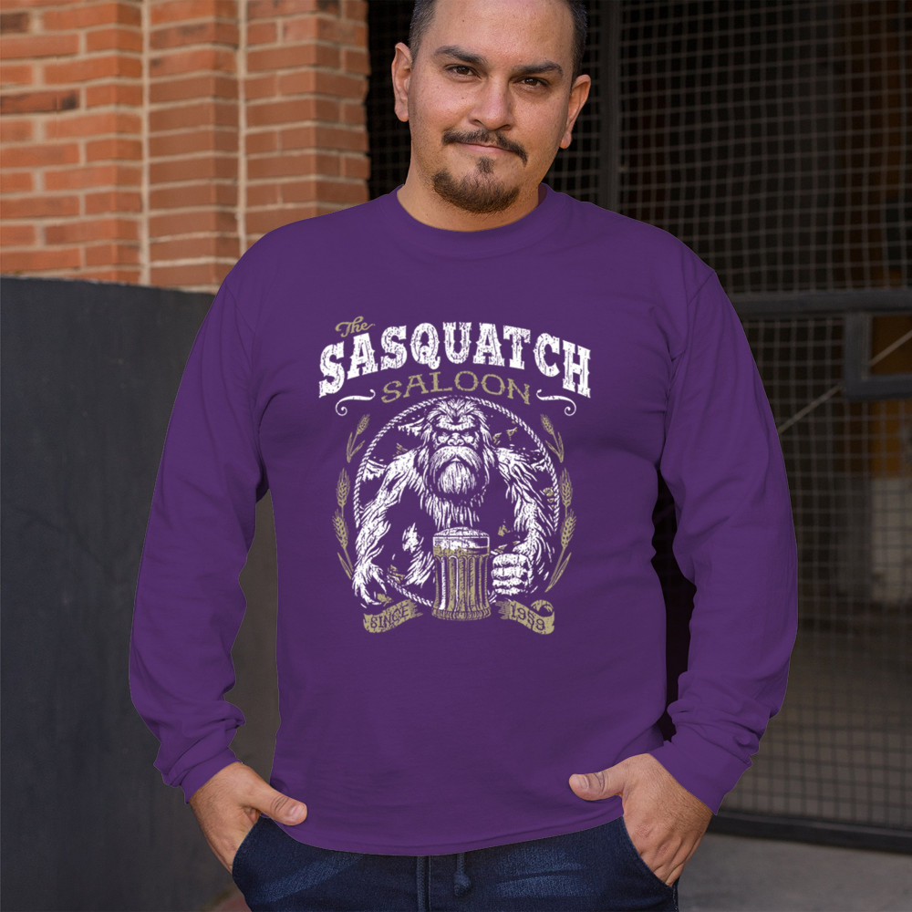 "Sasquatch Saloon" – A bold Bigfoot design for beer lovers and cryptid fans. Perfect for casual wear, parties, or as a gift for Bigfoot enthusiasts!