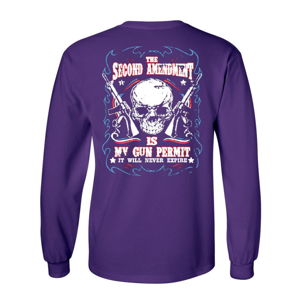 2ND AMENDMENT IS MY GUN PERMIT long sleeve t-shirt gun rights purple