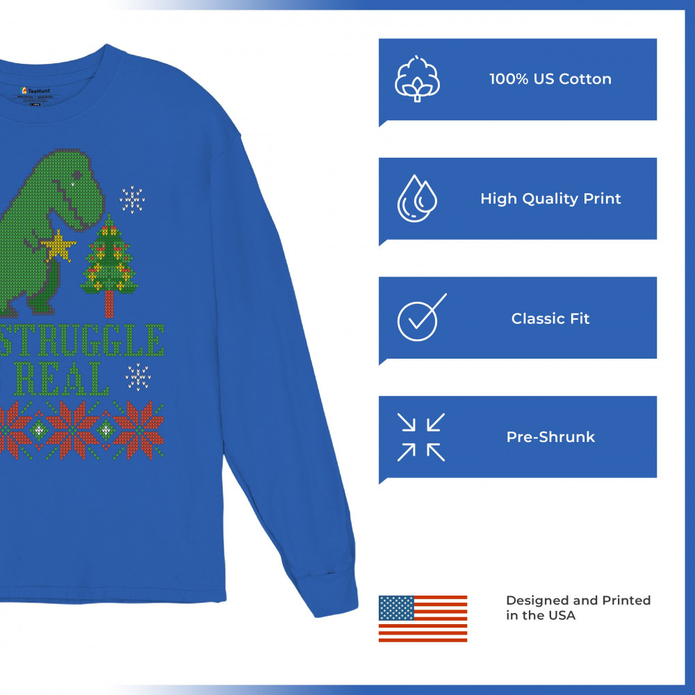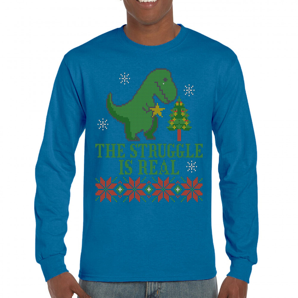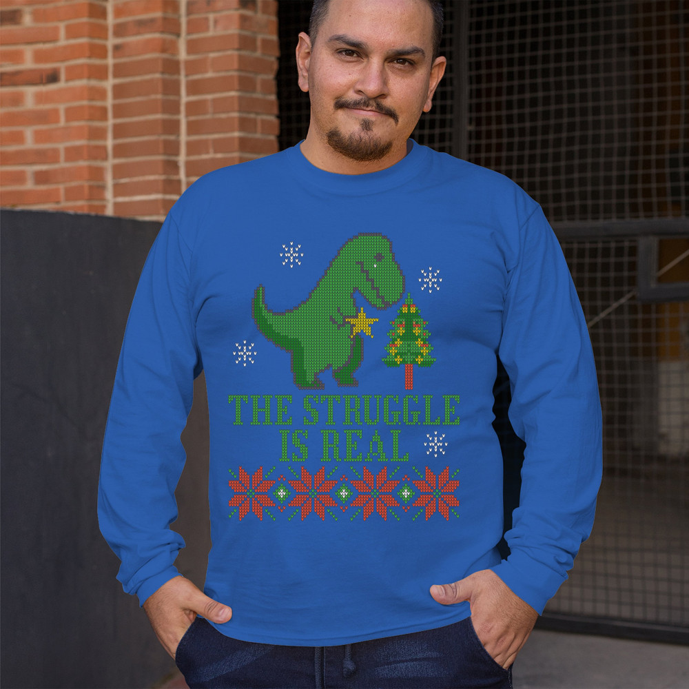 THE STRUGGLE IS REAL long sleeve t-shirt funny t-rex ugly sweater christmas royal blue