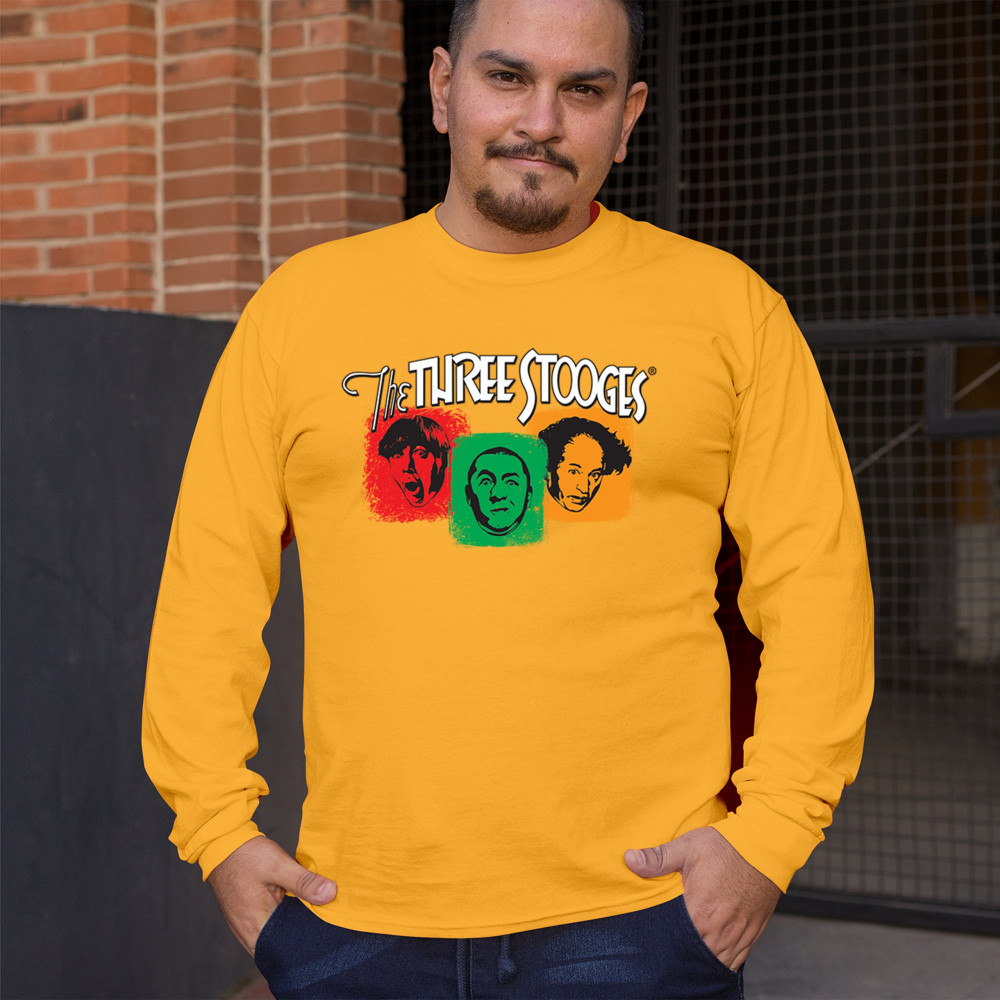 Capturing the essence of comedy, this design brings The Three Stooges into the modern era with a vivid, graphic portrayal. Each Stooge is highlighted in a distinct hue—red for Moe, green for Larry, and orange for Curly—mirroring their vibrant personalities that have transcended generations. This piece is a visual celebration, a colorful tribute to the laughter and joy they continue to bring into the world.