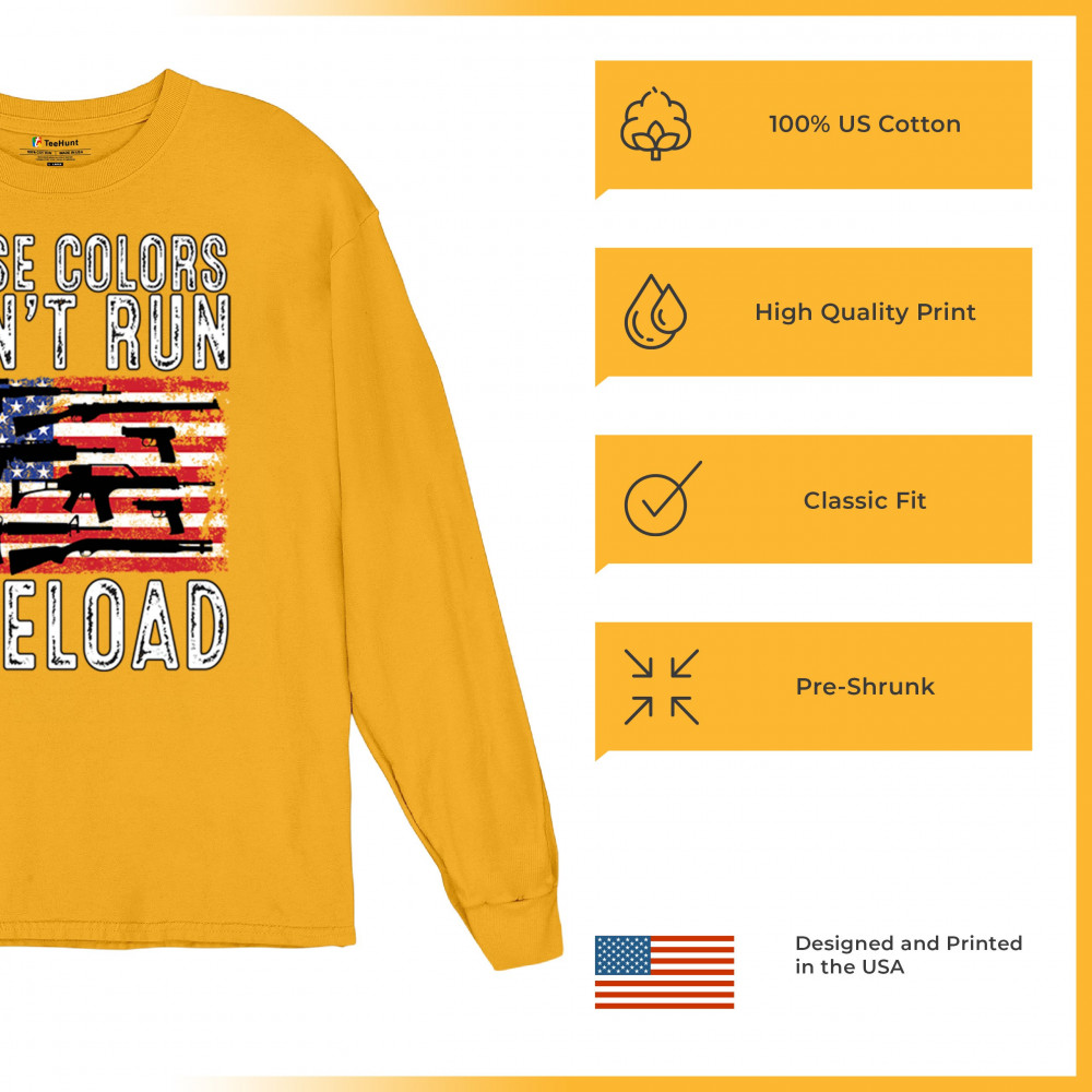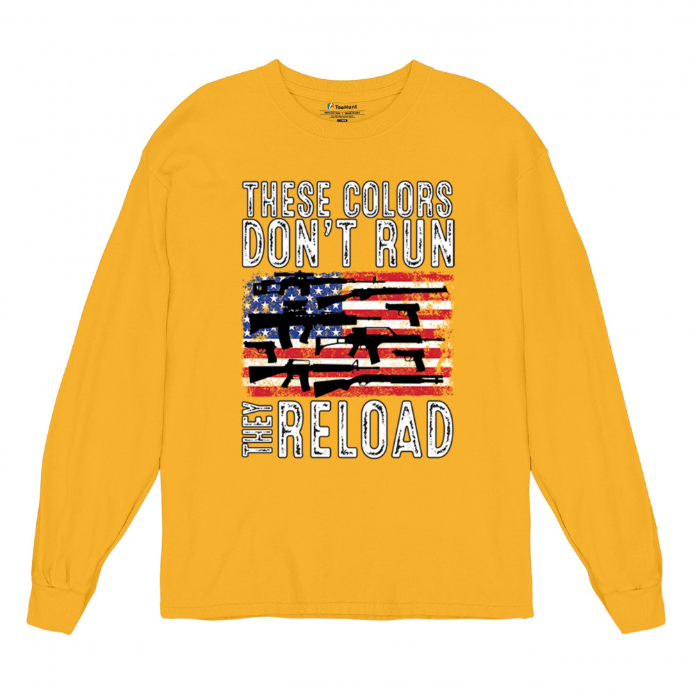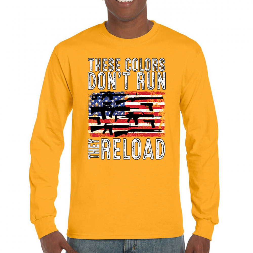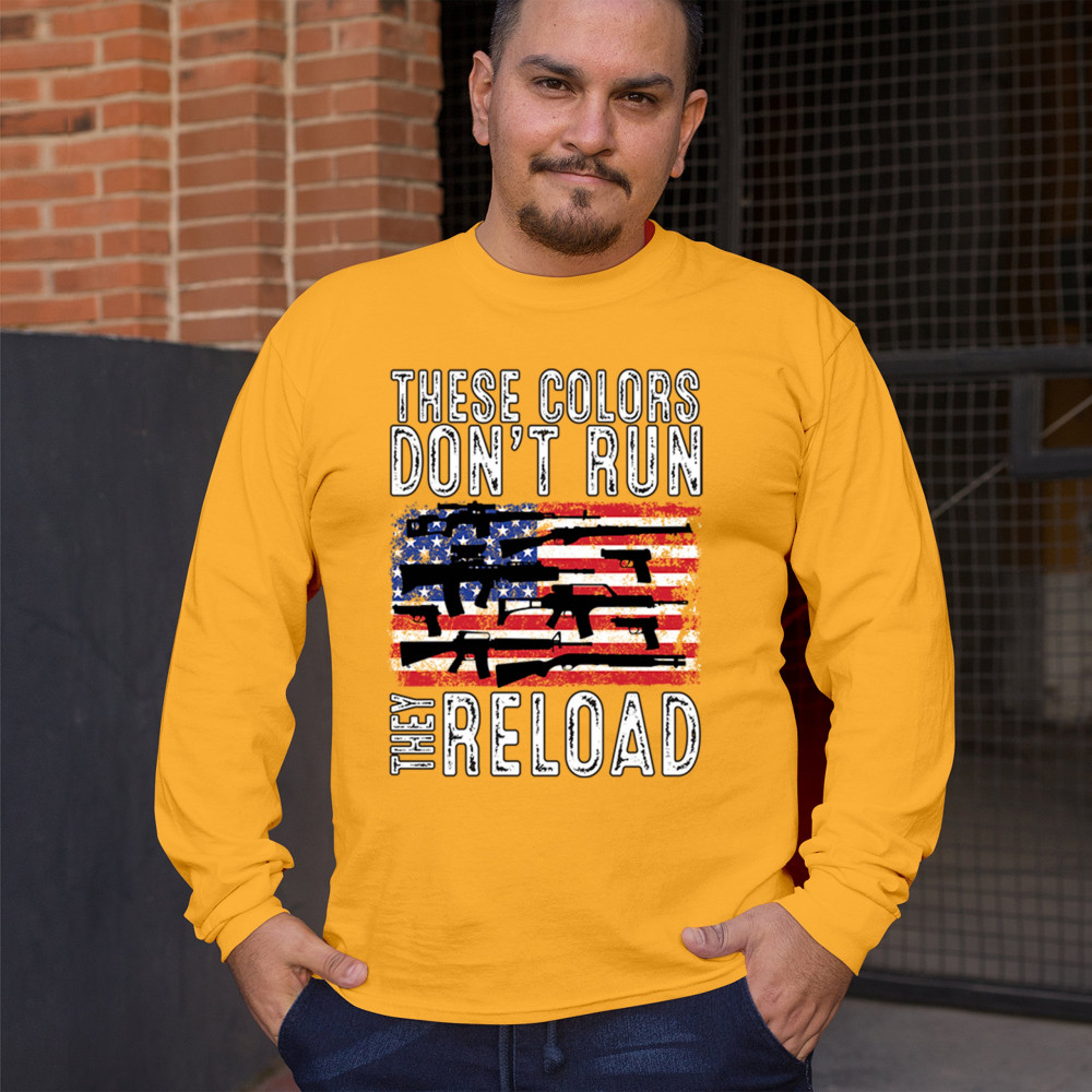 Explore the embodiment of patriotism with our 'These Colors Don't Run, They Reload' tee. A bold statement for those who honor freedom and resilience.