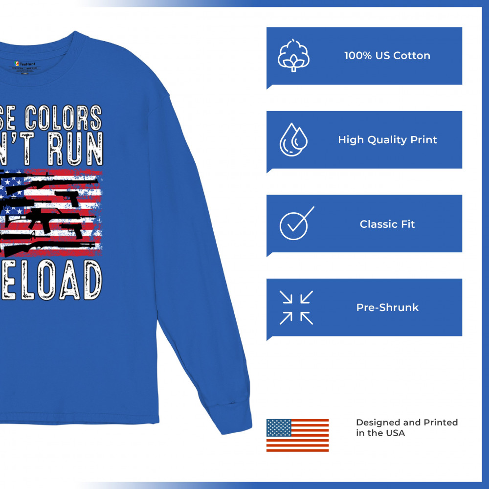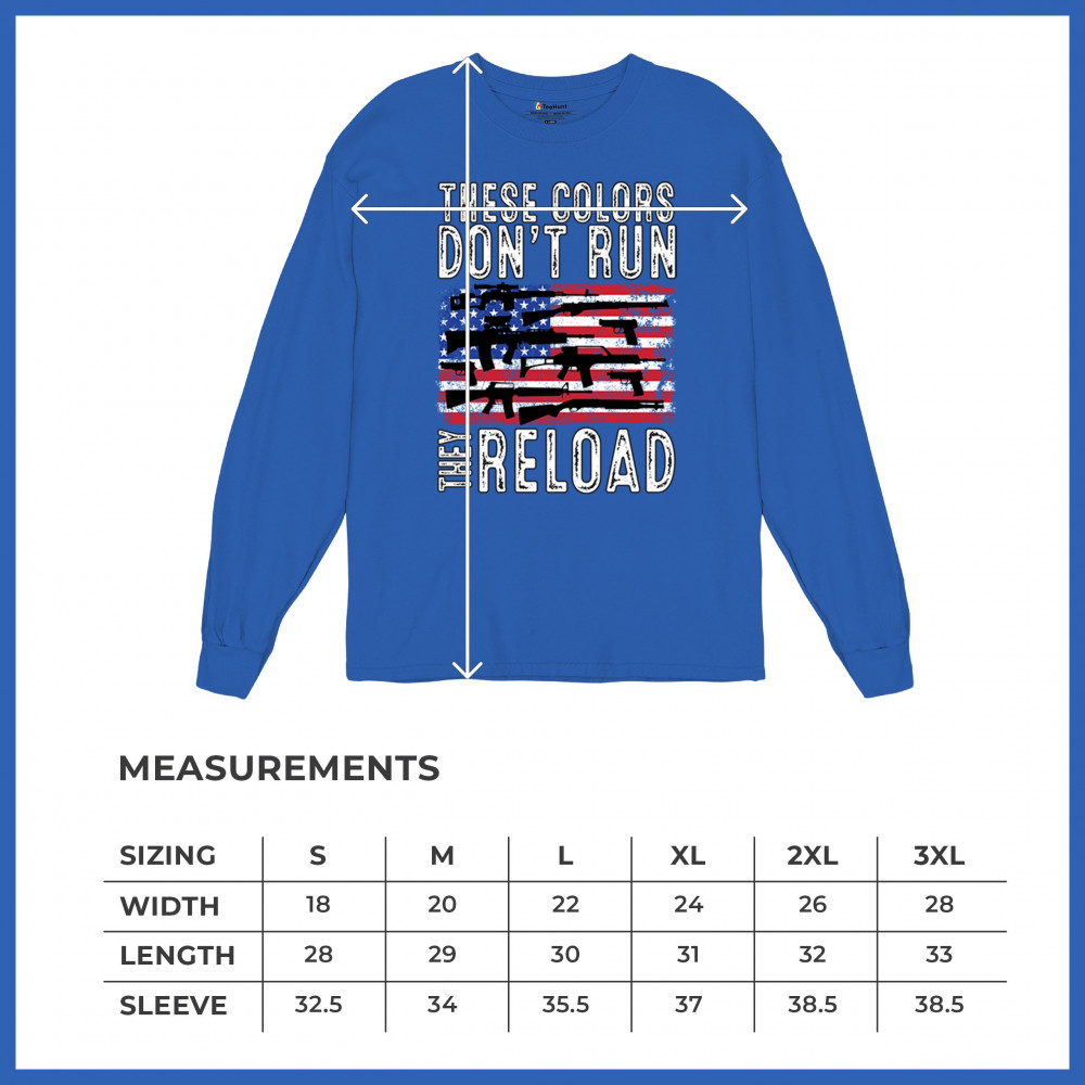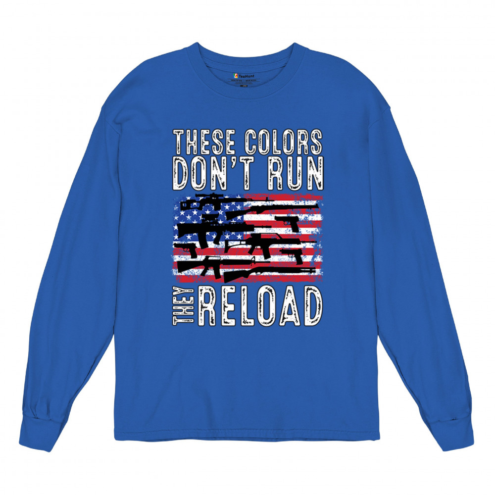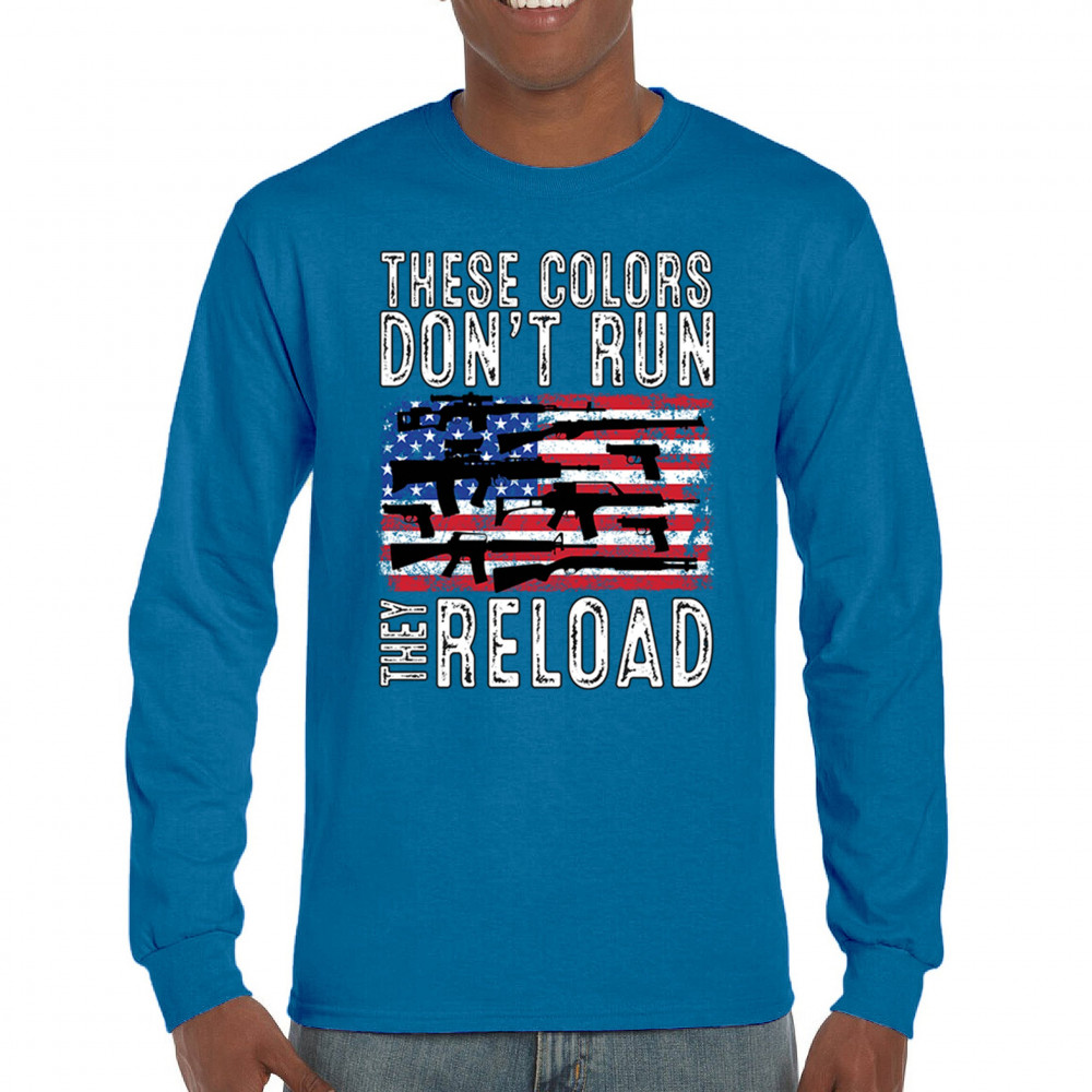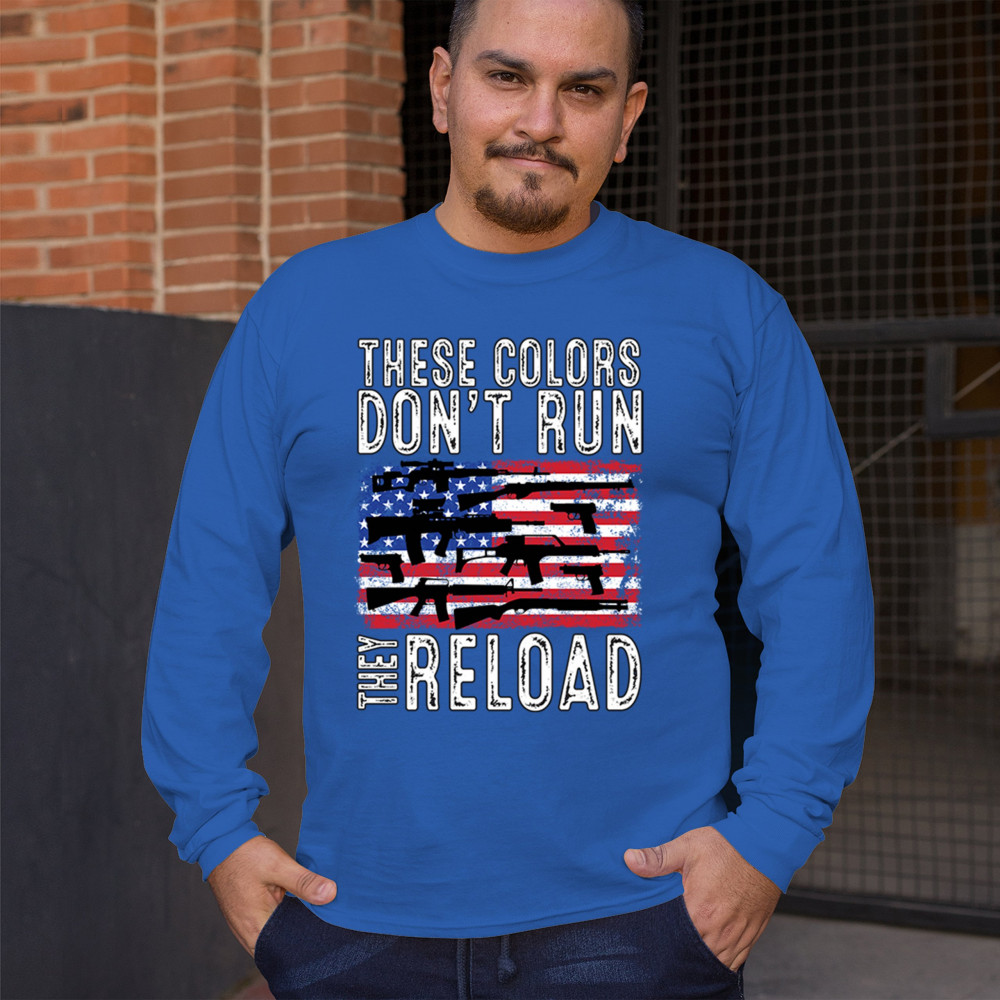 Explore the embodiment of patriotism with our 'These Colors Don't Run, They Reload' tee. A bold statement for those who honor freedom and resilience.