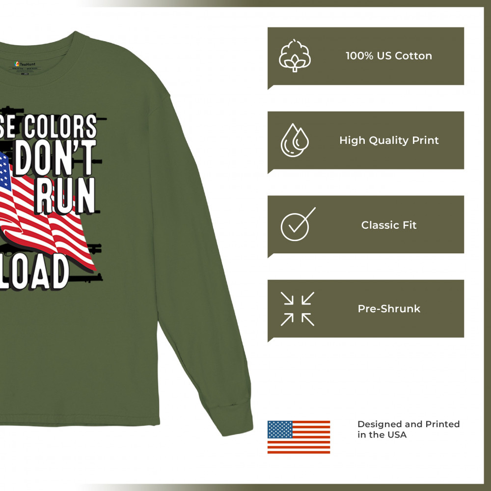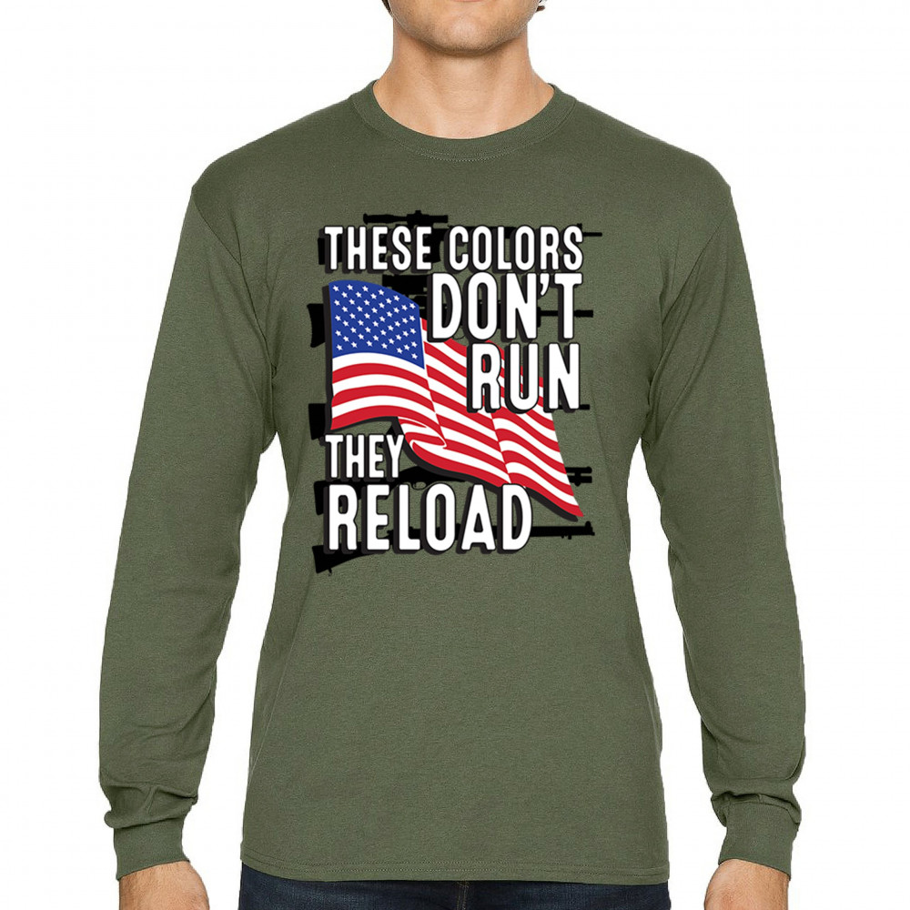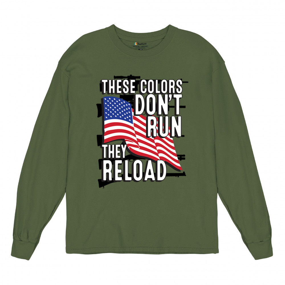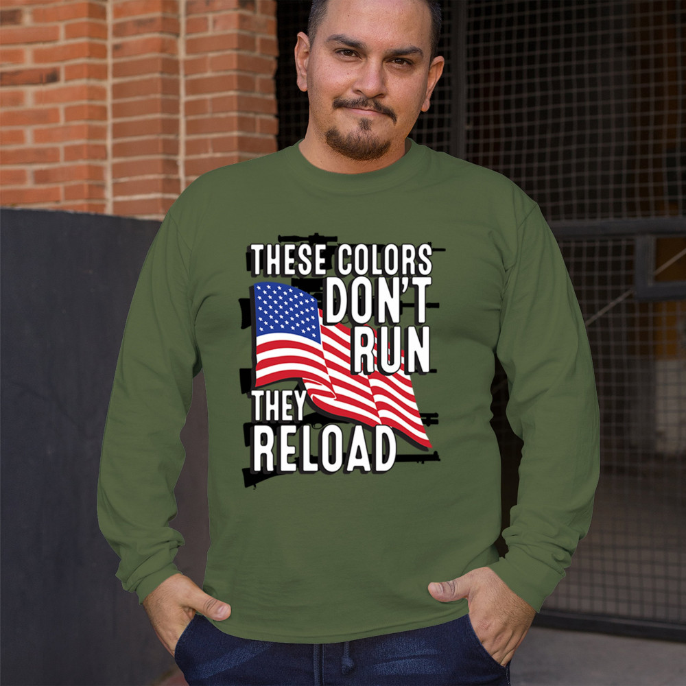 Discover the tee that boldly proclaims American resilience and liberty: 'These Colors Don't Run, They Reload'—a must-have for patriots and veterans.
