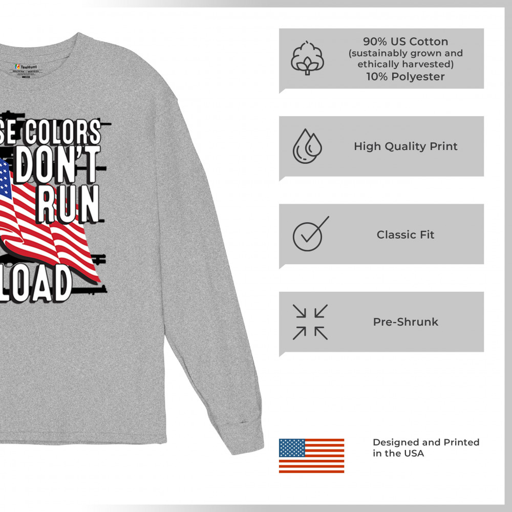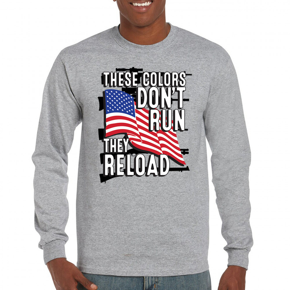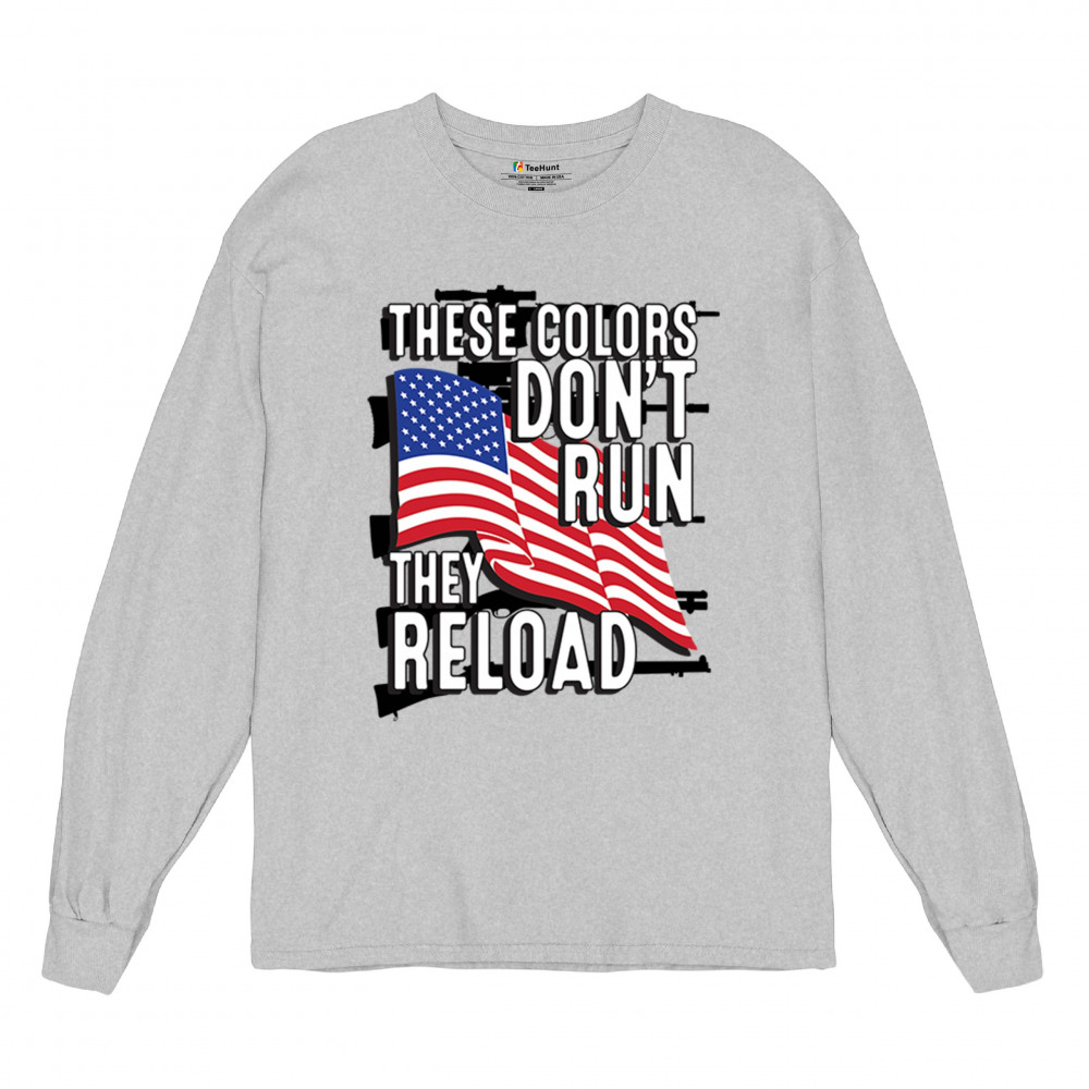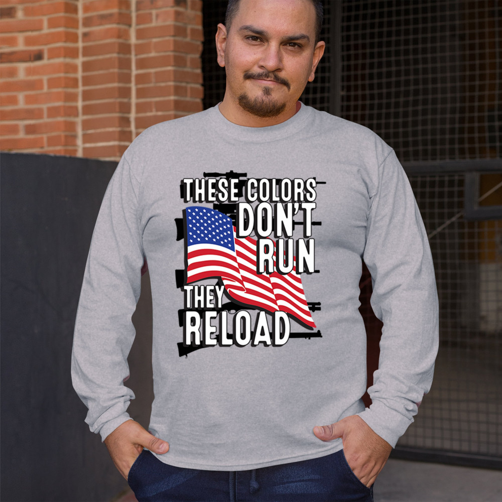 Discover the tee that boldly proclaims American resilience and liberty: 'These Colors Don't Run, They Reload'—a must-have for patriots and veterans.