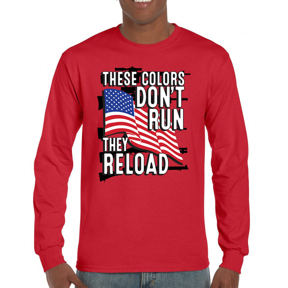 Discover the tee that boldly proclaims American resilience and liberty: 'These Colors Don't Run, They Reload'—a must-have for patriots and veterans.