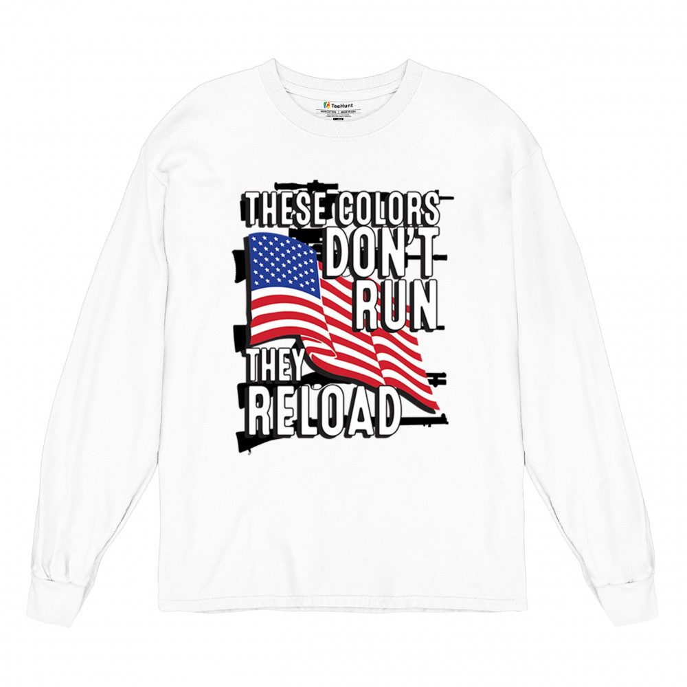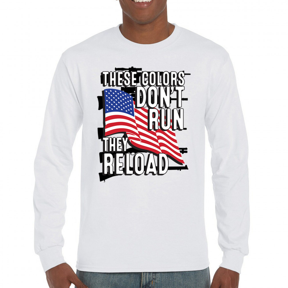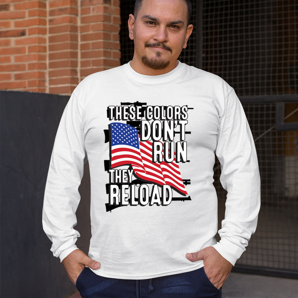 Discover the tee that boldly proclaims American resilience and liberty: 'These Colors Don't Run, They Reload'—a must-have for patriots and veterans.