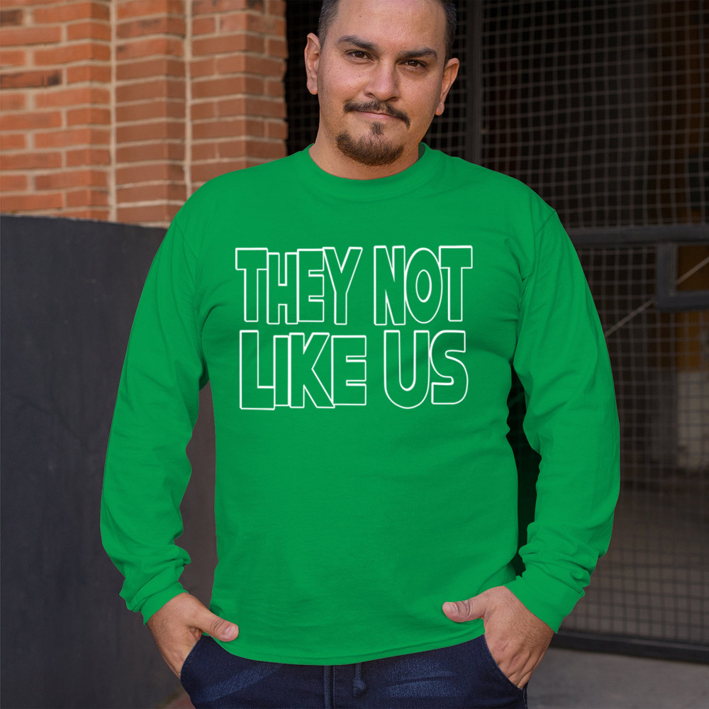 Declare your difference with this bold urban slang design—"They Not Like Us" in crisp black and white for streetwear that makes a statement. Whether you’re vibing at a party, out with friends, or keeping it solo, this gritty, minimalist design speaks independence, outsider pride, and pure nonconformist attitude.