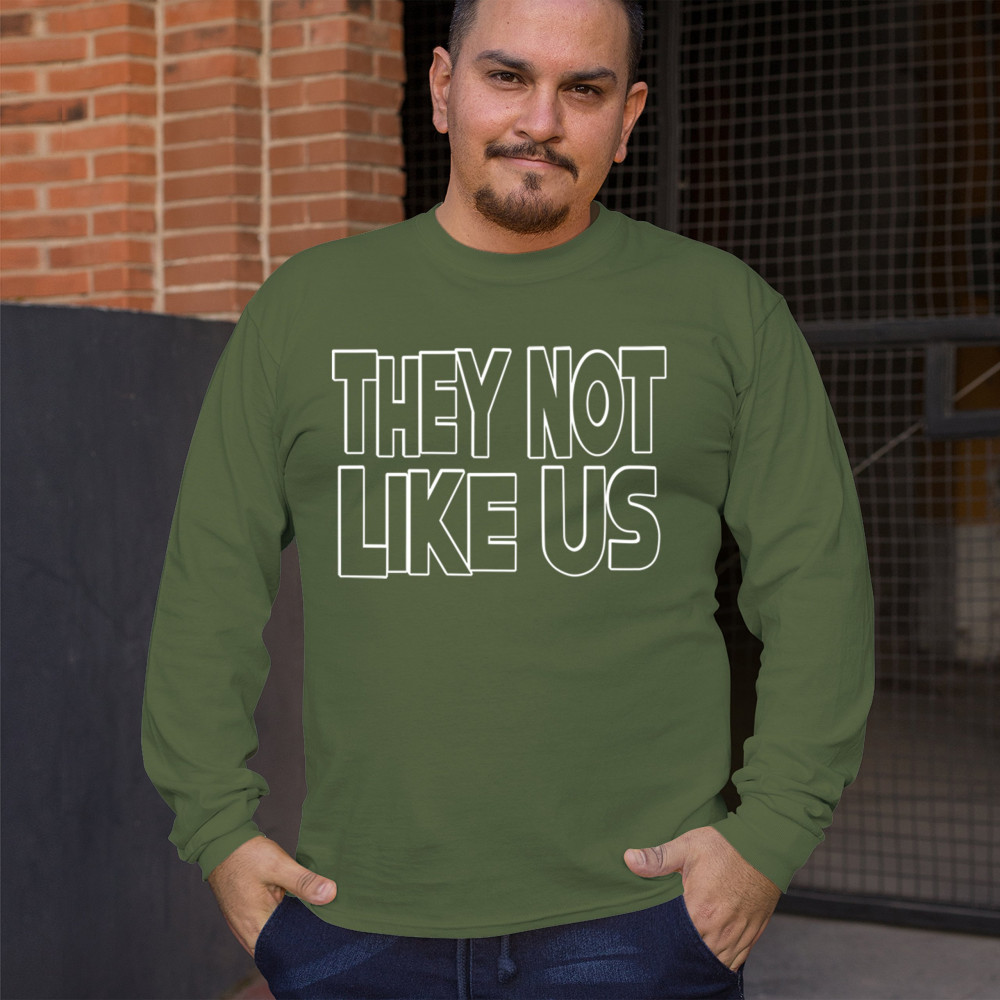 Declare your difference with this bold urban slang design—"They Not Like Us" in crisp black and white for streetwear that makes a statement. Whether you’re vibing at a party, out with friends, or keeping it solo, this gritty, minimalist design speaks independence, outsider pride, and pure nonconformist attitude.