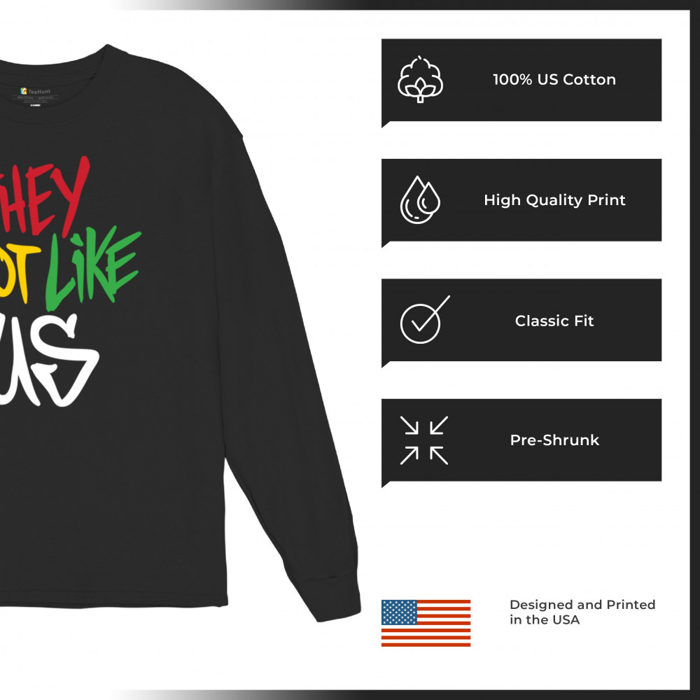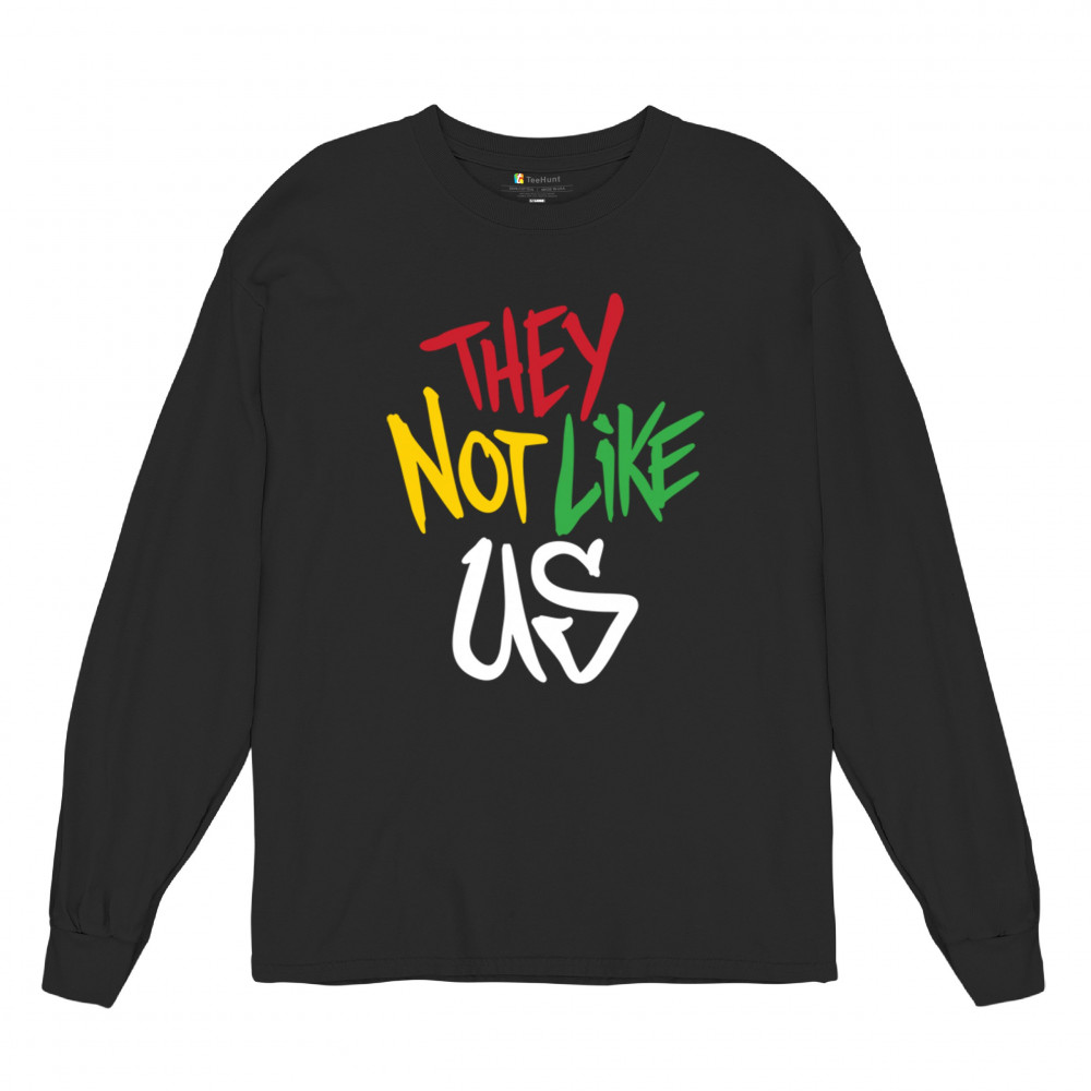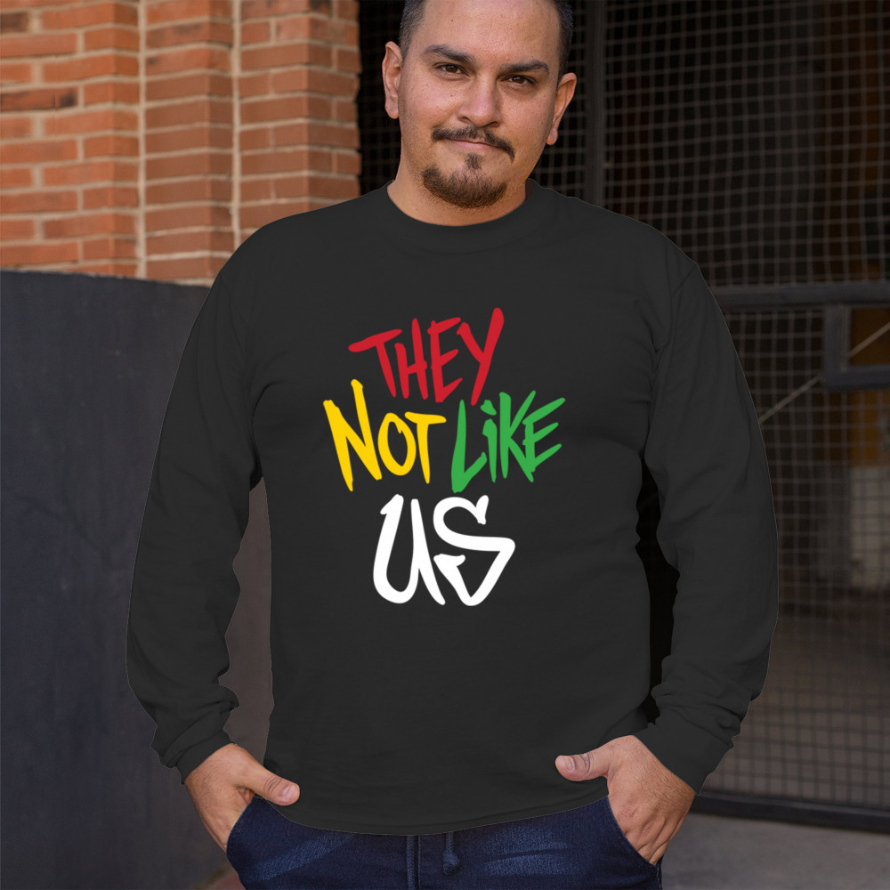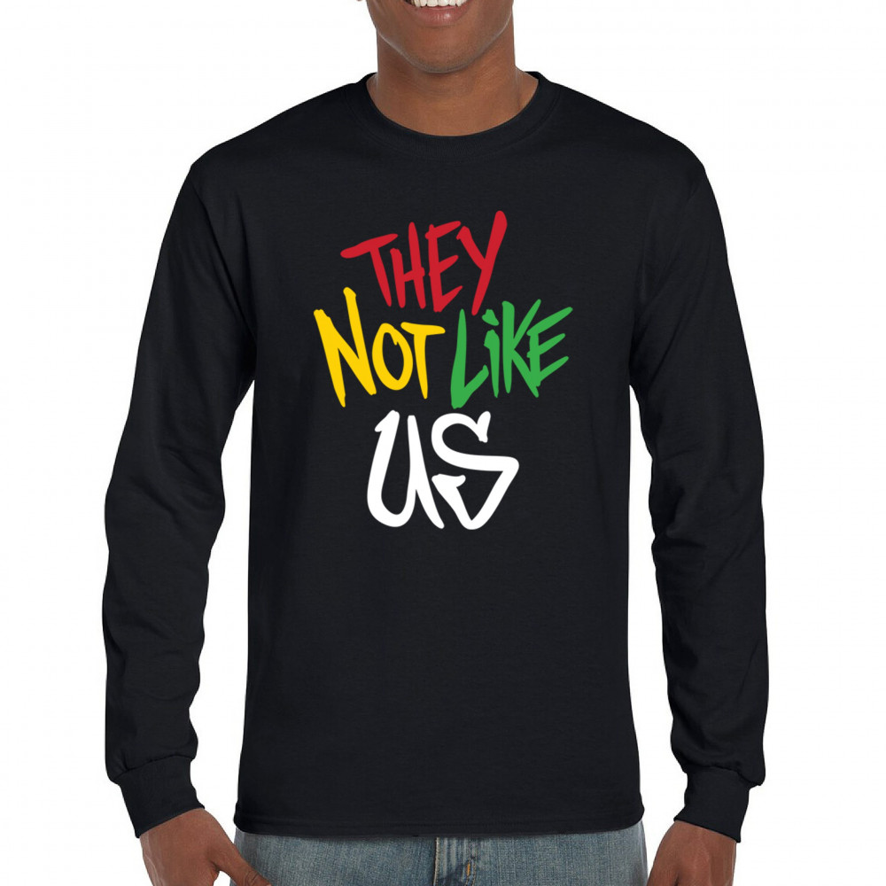 THEY NOT LIKE US long sleeve t-shirt peace love light rasta funny weed humor black