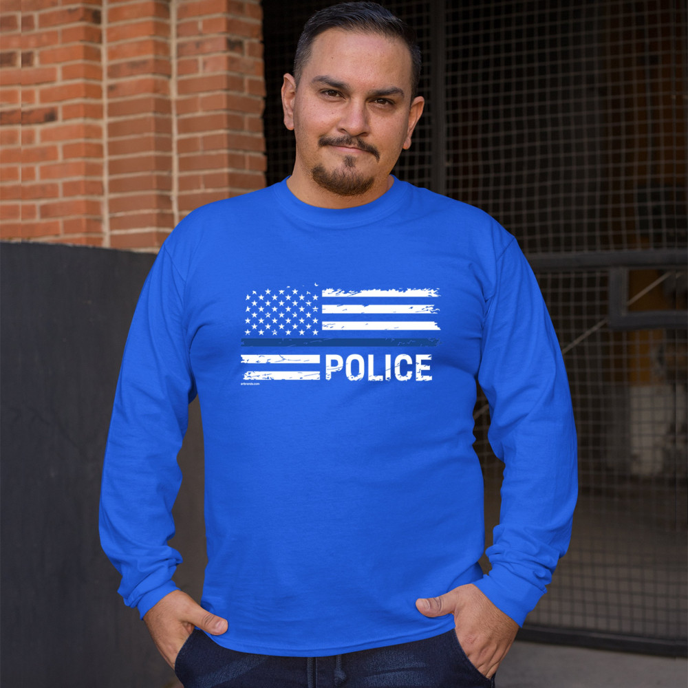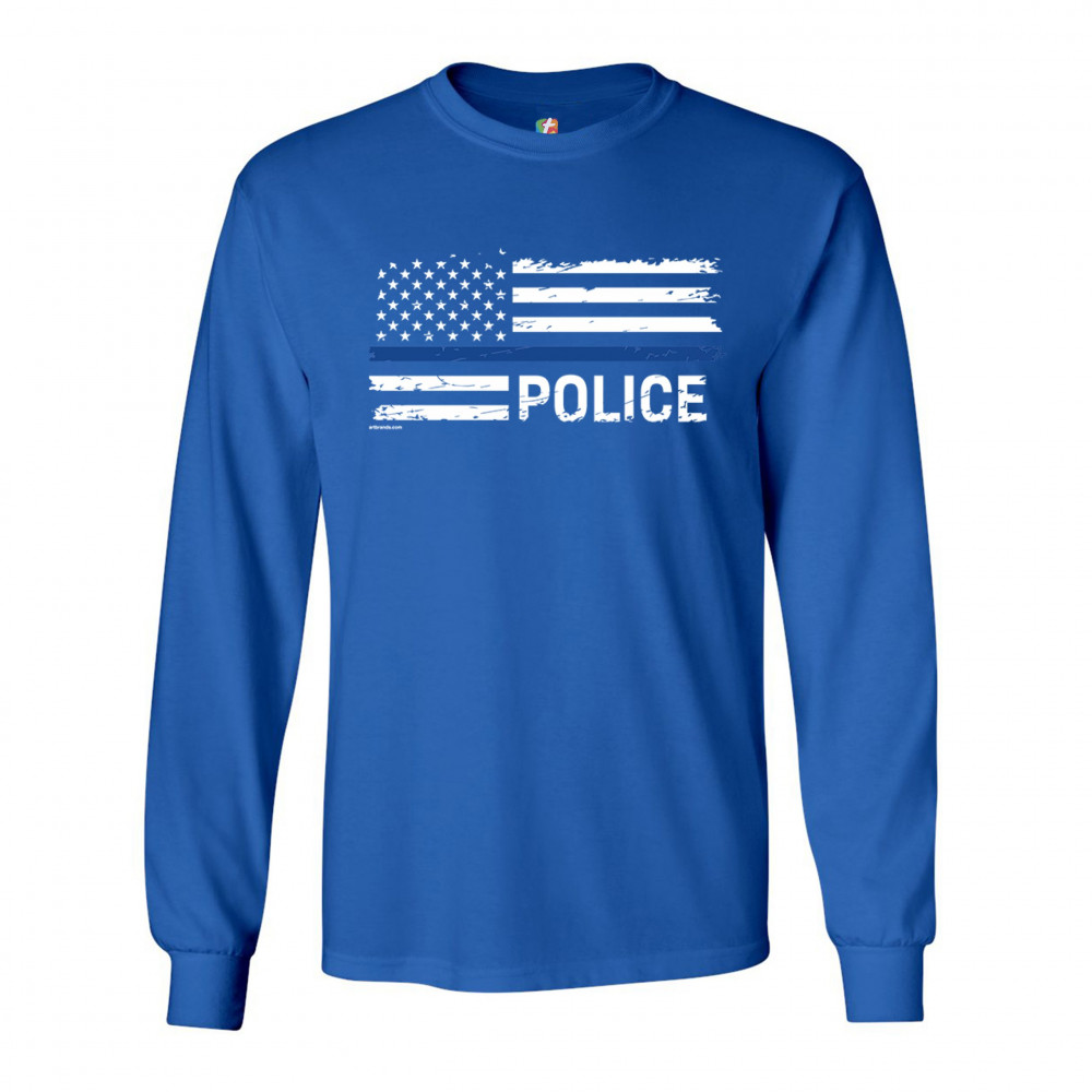 THIN BLUE LINE AMERICAN FLAG long sleeve t-shirt police law enforcement royal blue