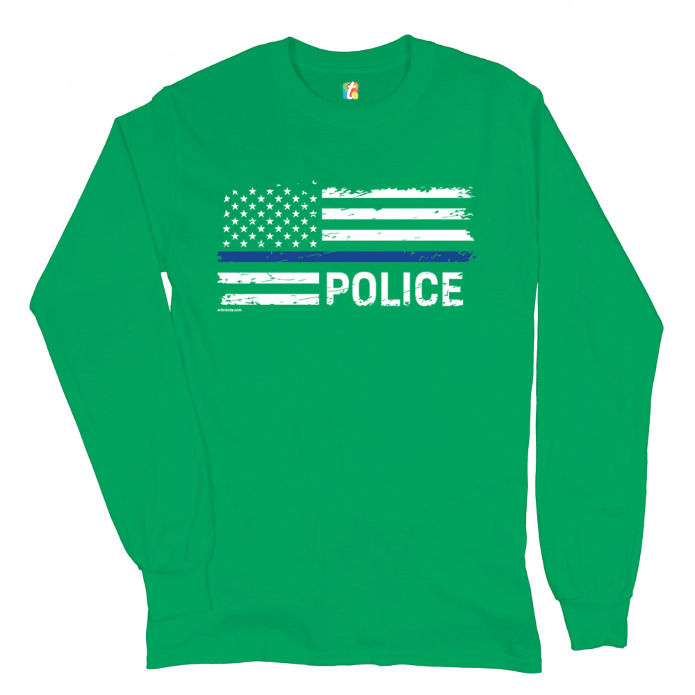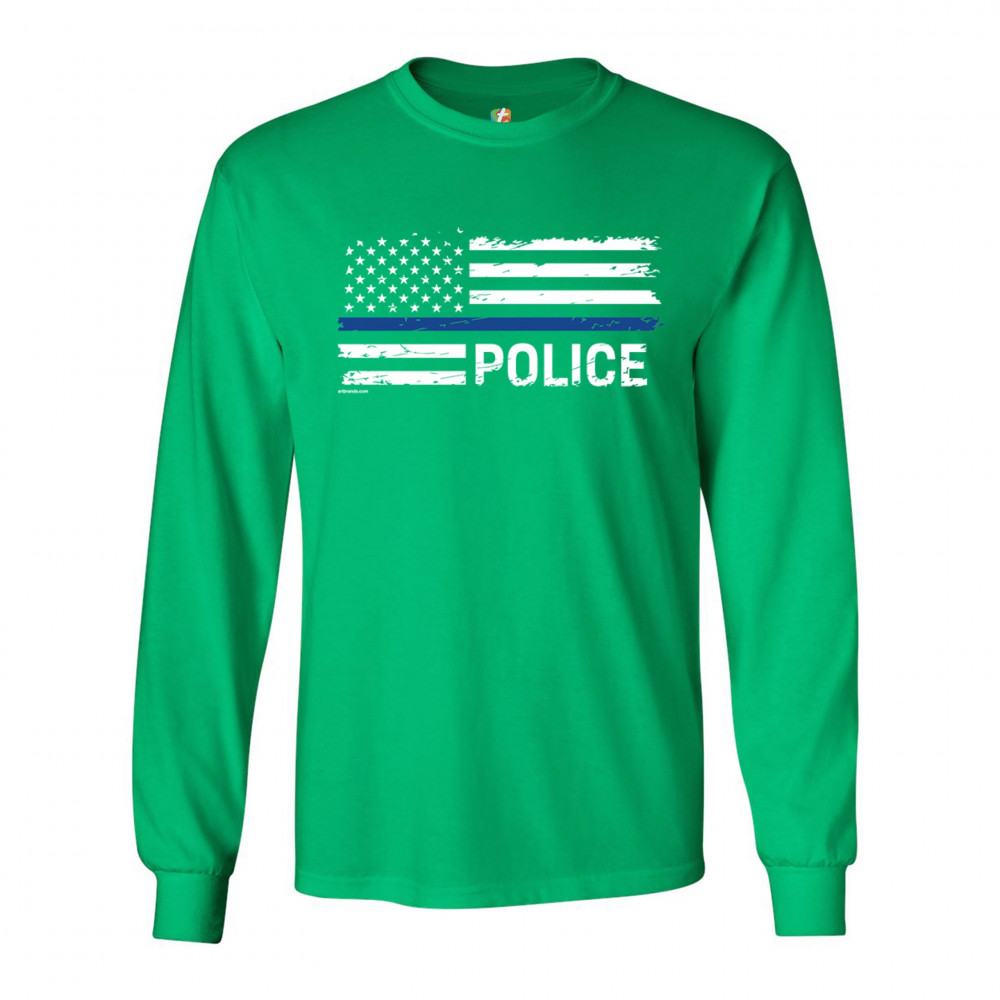 THIN BLUE LINE AMERICAN FLAG long sleeve t-shirt police law enforcement green