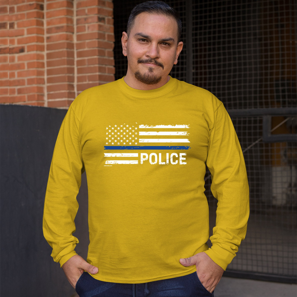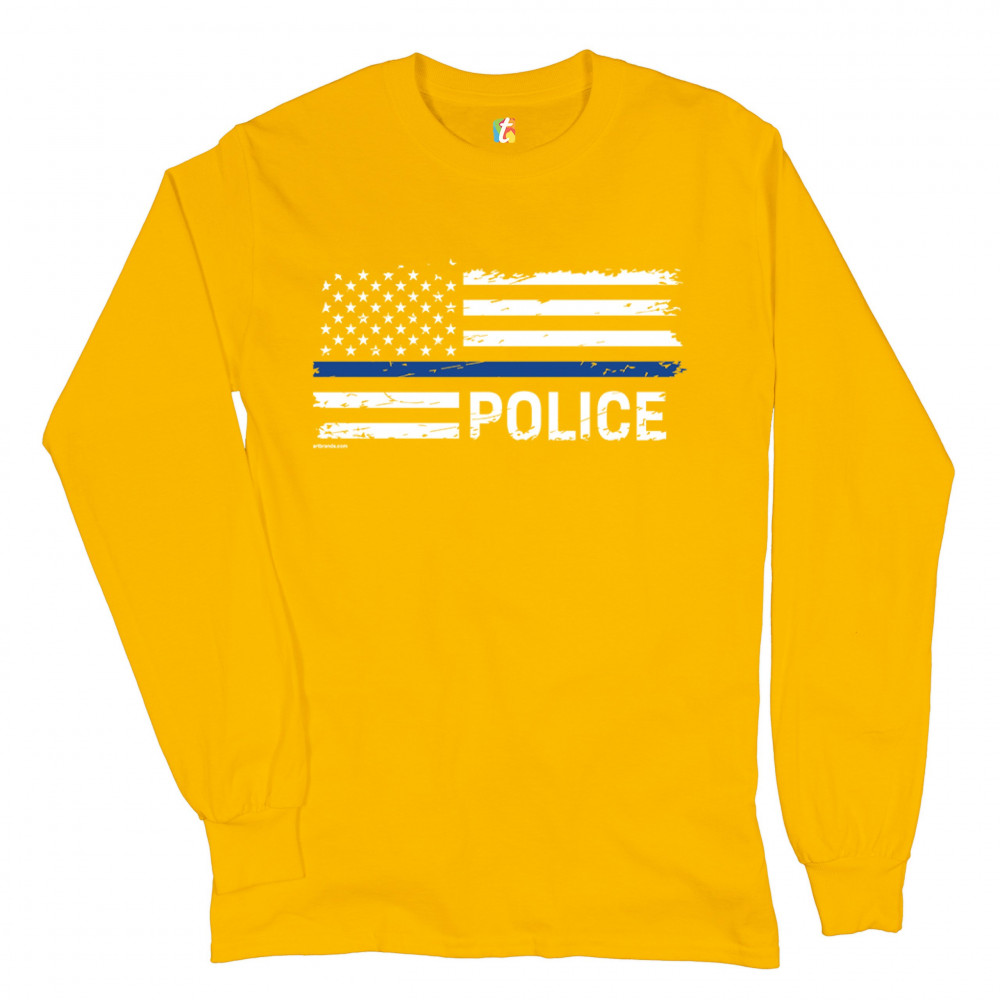 THIN BLUE LINE AMERICAN FLAG long sleeve t-shirt police law enforcement yellow
