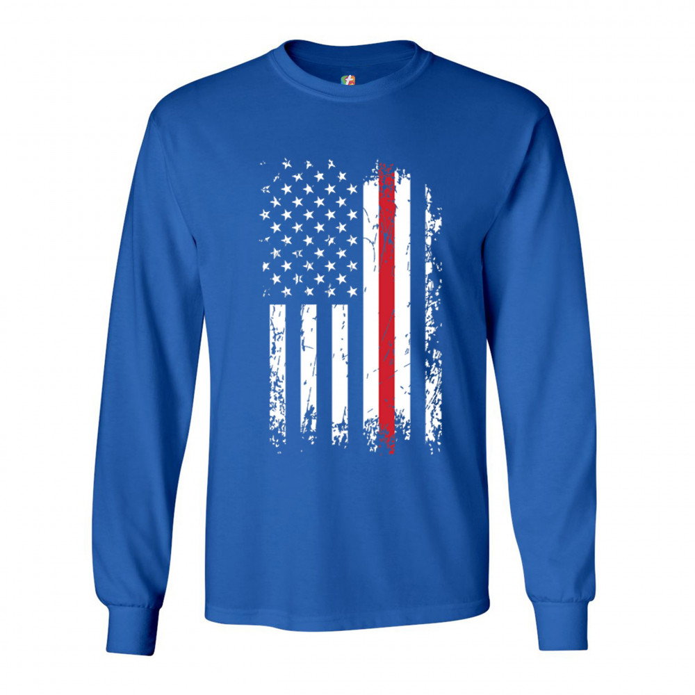THIN RED LINE long sleeve t-shirt american flag firefighter fire department royal blue