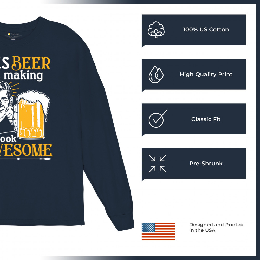 Show off your beer-loving personality with our "This Beer is Making You Look Awesome" design. Featuring a vintage-style illustration of a man holding a frothy beer mug and a playful quote, this design is perfect for adding humor to your outings. Whether at beer festivals, parties, or casual get-togethers, it’s an excellent gift for craft beer enthusiasts, brewmasters, and anyone who loves a good laugh. Add a bit of fun to your wardrobe with this charming beer-themed design!