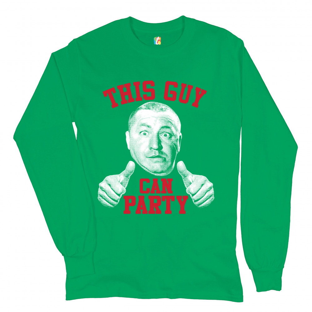 THIS GUY CAN PARTY long sleeve t-shirt curly howard the three stooges green