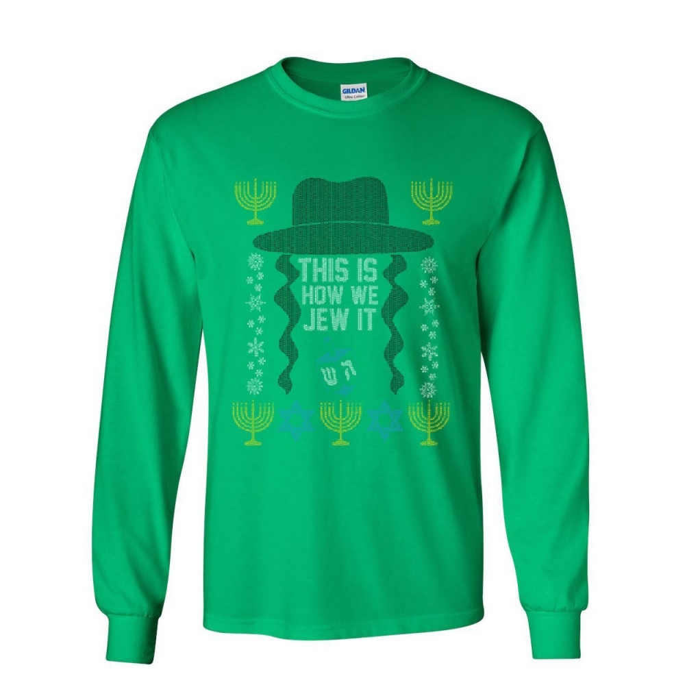 THIS IS HOW WE JEW IT long sleeve t-shirt funny menorah star of david jewish tee green