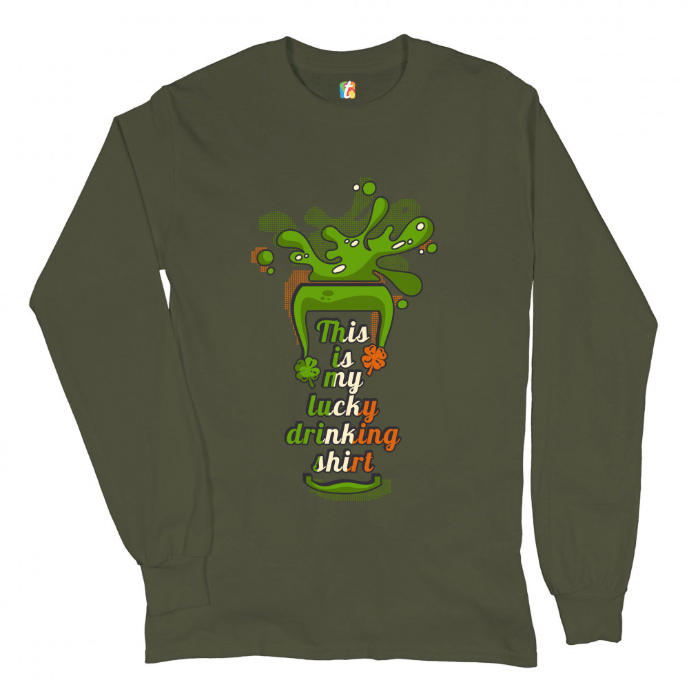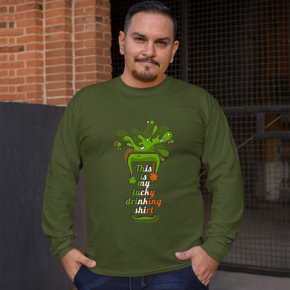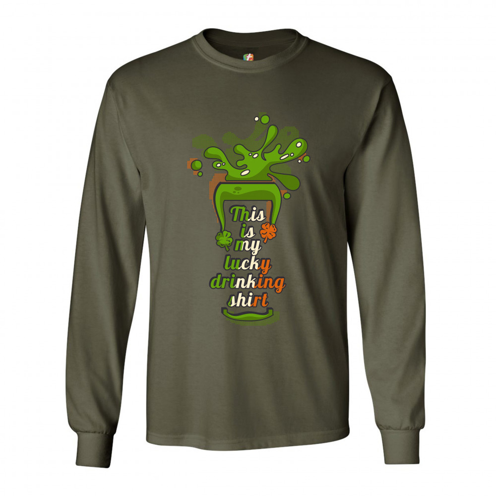 THIS IS MY LUCKY DRINKING SHIRT long sleeve t-shirt st. patrick's day irish military green