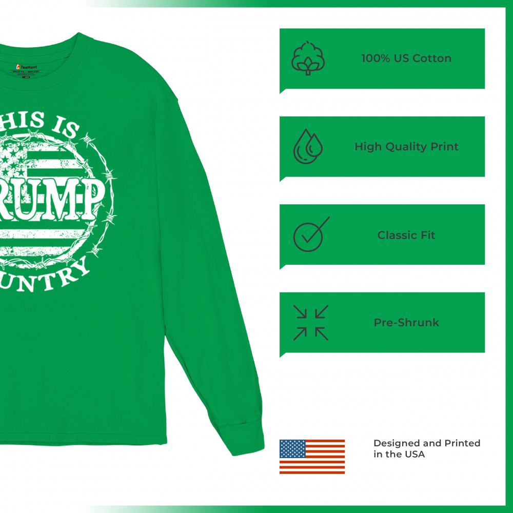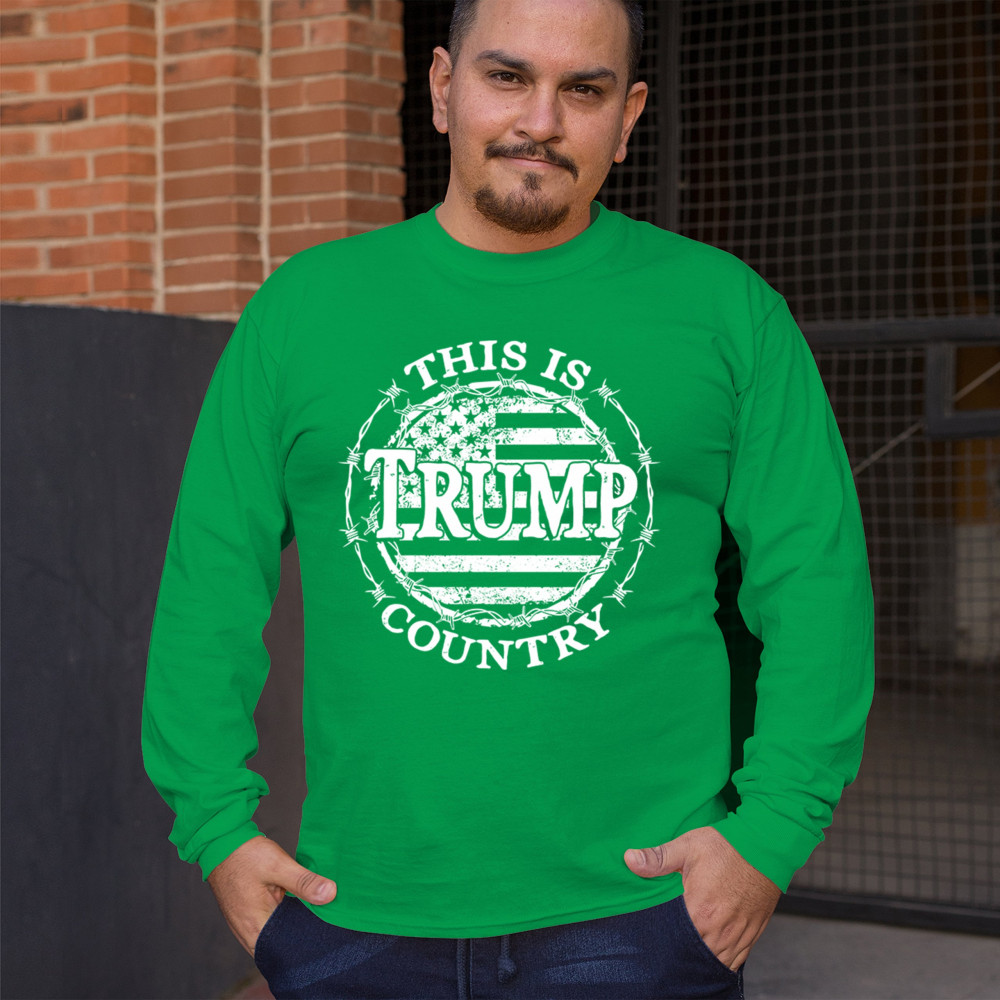 Celebrate your unwavering support for Trump and JD Vance with our exclusive "Trump Country" design. Featuring a vintage American flag encircled by barbed wire, this piece makes a strong statement against Kamala Harris and her policies. It's perfect for conservatives who believe in the America First movement. Whether you're attending a rally, political event, or simply expressing your patriotism, this design is ideal for showcasing your values and support for Trump's vision for America.