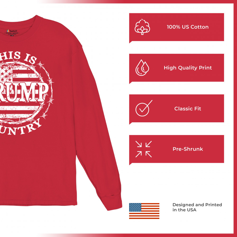 Show your support for Trump and JD Vance with the "Trump Country" design, featuring a distressed American flag and barbed wire. Perfect for rallies and patriotic events.