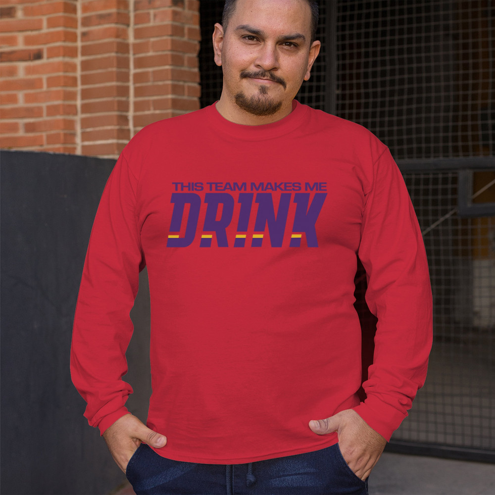 Show your Baltimore pride with this hilarious “This Team Makes Me Drink†design. Perfect for purple and gold fan gear, it blends gameday drinking humor with touchdown vibes, playoff energy, and Bleed Purple spirit. Whether tailgating, watching the big game, or living that Maryland grit lifestyle, it’s the ultimate fan piece for Die Hard Fantasy Football fans and championship seekers alike.